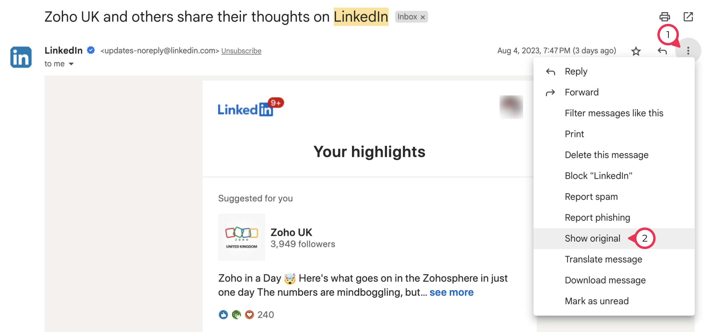 2. Click on the Dropdown icon in the right-corner > Select 'Show Original'.