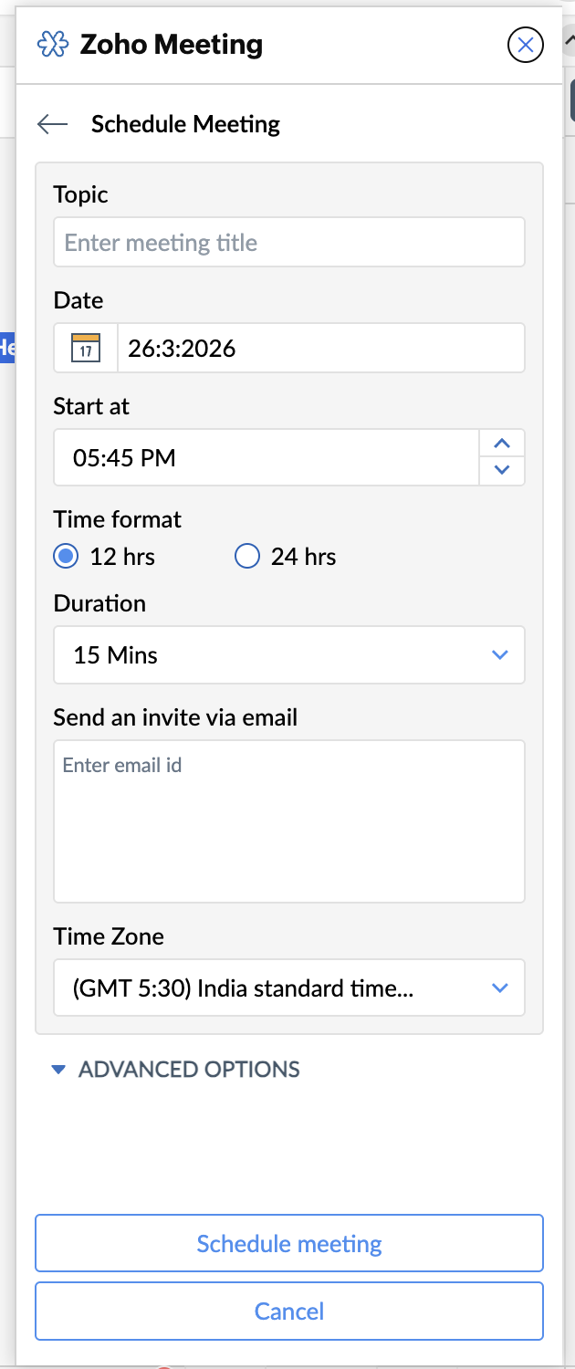 Zoho Meeting Extension to Schedule a meeting from a Document
