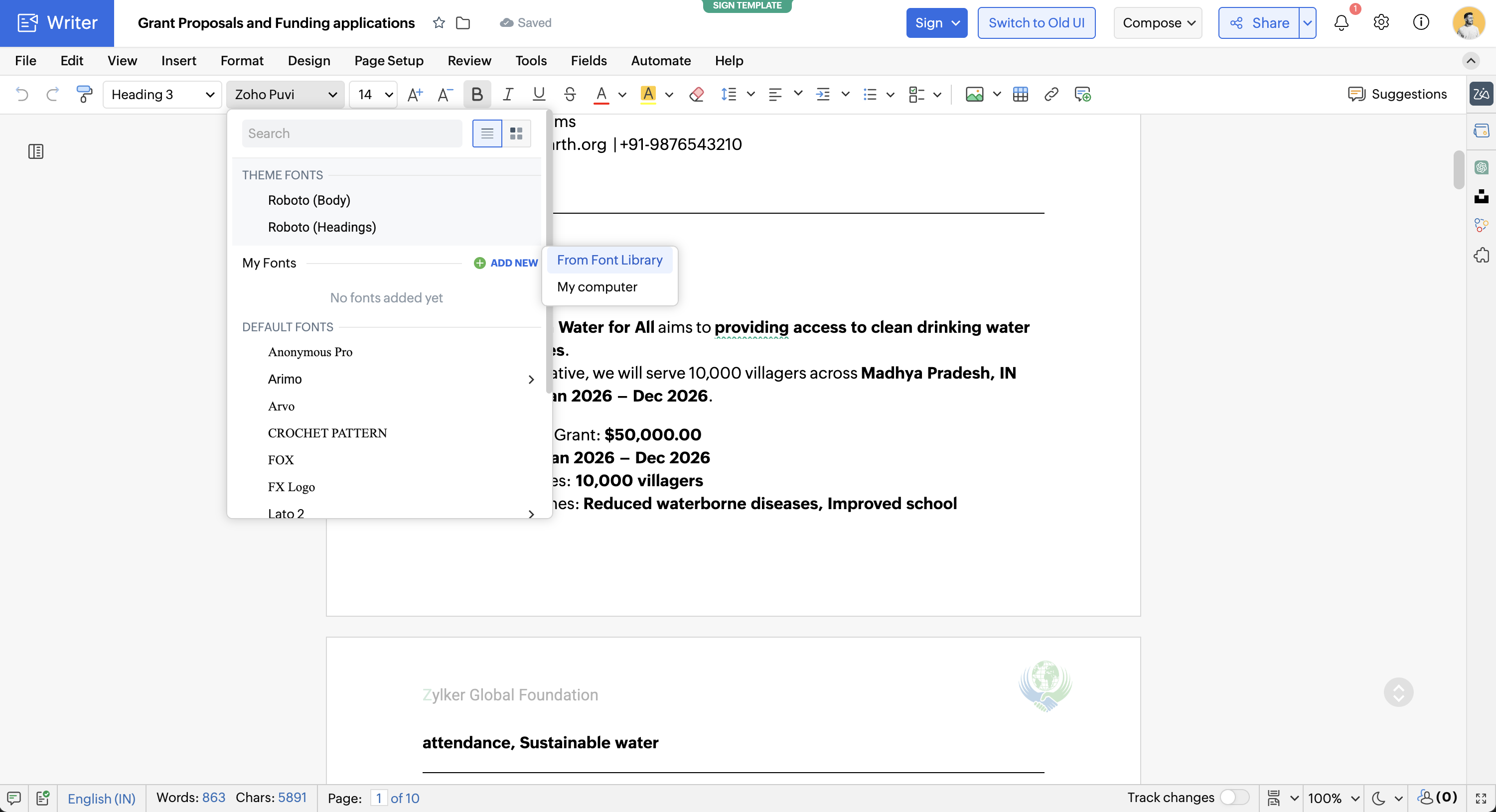 - To add fonts from Zoho Writer Font Library