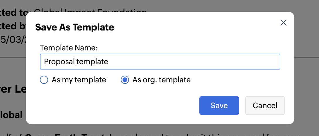 3. In the Save As Template dialog, enter an appropriate name, select the As org. template option, and hit Save.