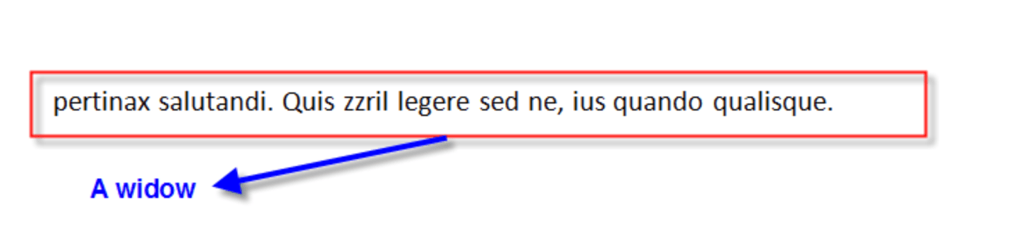 a widow refers to a single line of a paragraph that appears at the top of a page, separated from the rest of the paragraph on the previous page.