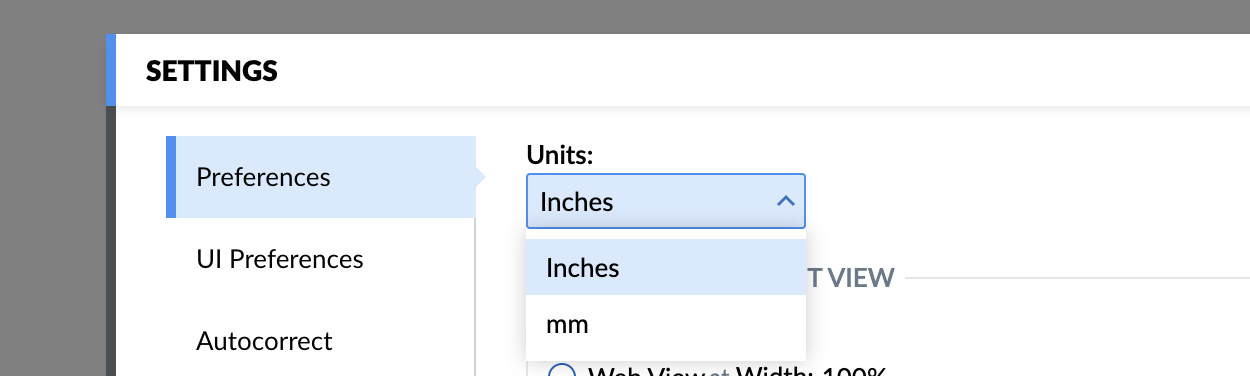Recommended solution: Navigate to Settings > Preferences, and under Units, select your desired option (Inches or mm).