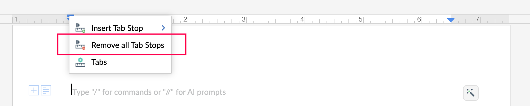 A tab stop defines where your cursor lands when you press the Tab key. It’s useful for aligning text, lists, or columns neatly. For example, you can use tab stops to create evenly spaced invoice entries or structured lists without relying on tables.