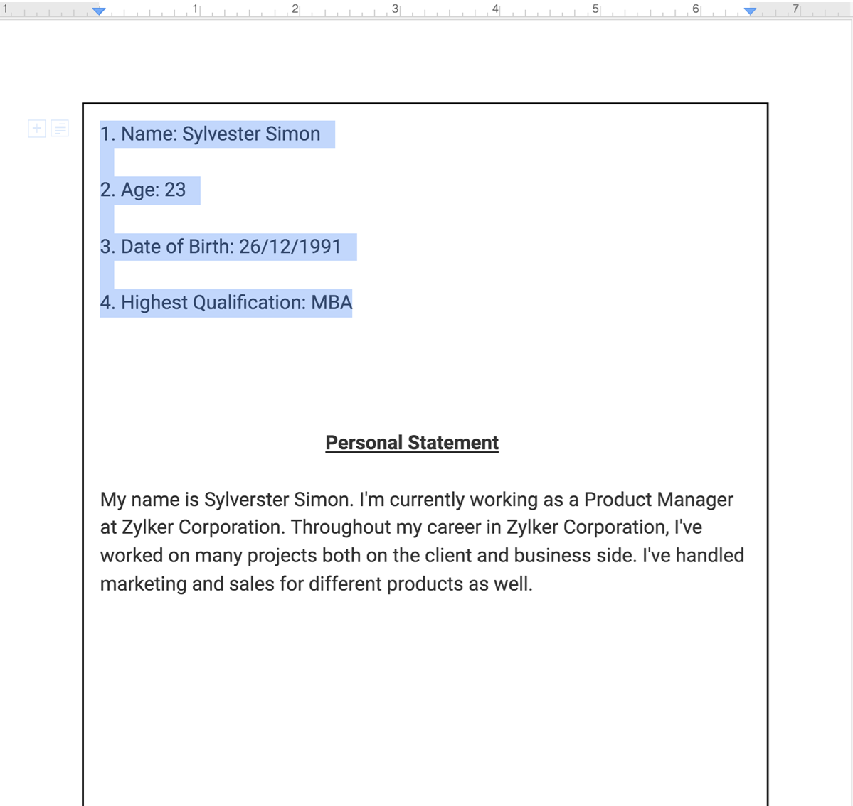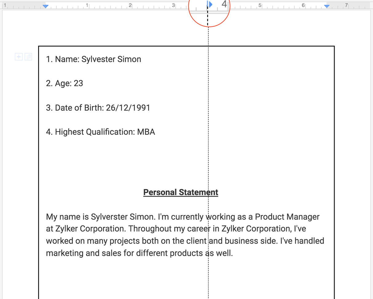 5. Now place the cursor in front of the text that you want to move to the desired Tab Stop and click on the Tab button on your keyboard. The text will move and get aligned accordingly. Repeat this step for all the selected texts that you want to move to the Tab Stop and it will move and align itself accordingly.