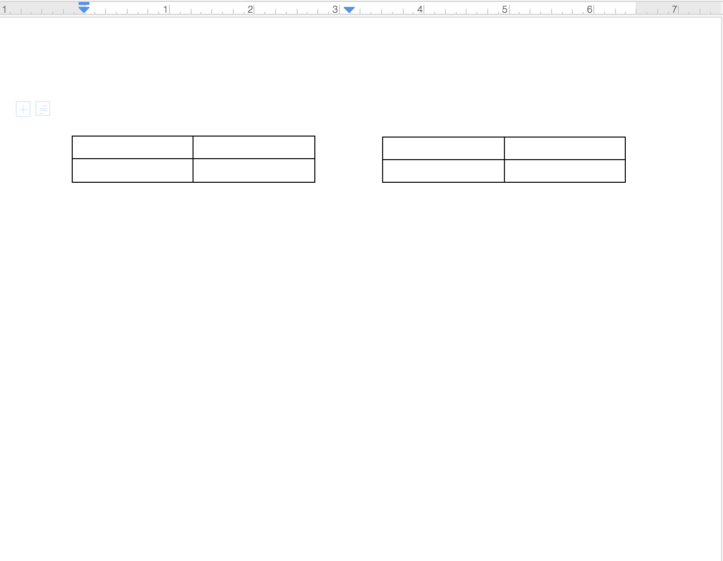 Two-Column Table: Use a single two-cell table, placing one table inside each cell and removing the cell borders for a cleaner layout.