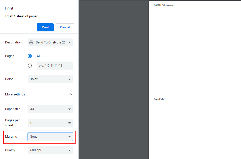 2. From the side bar on the left, click on More Settings, and change the Margins value to NONE