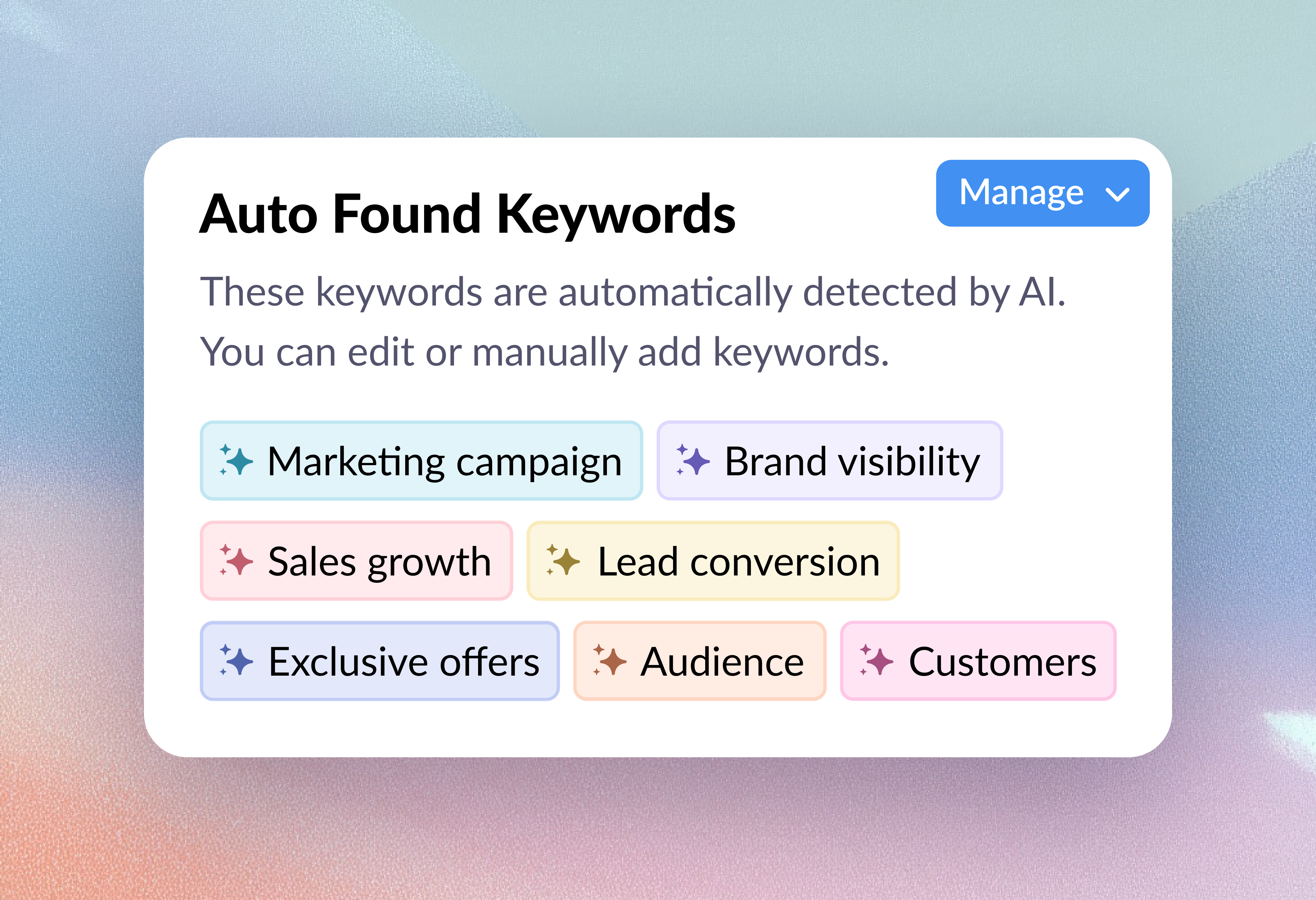 - Click Manage Keywords to add or edit the keywords.