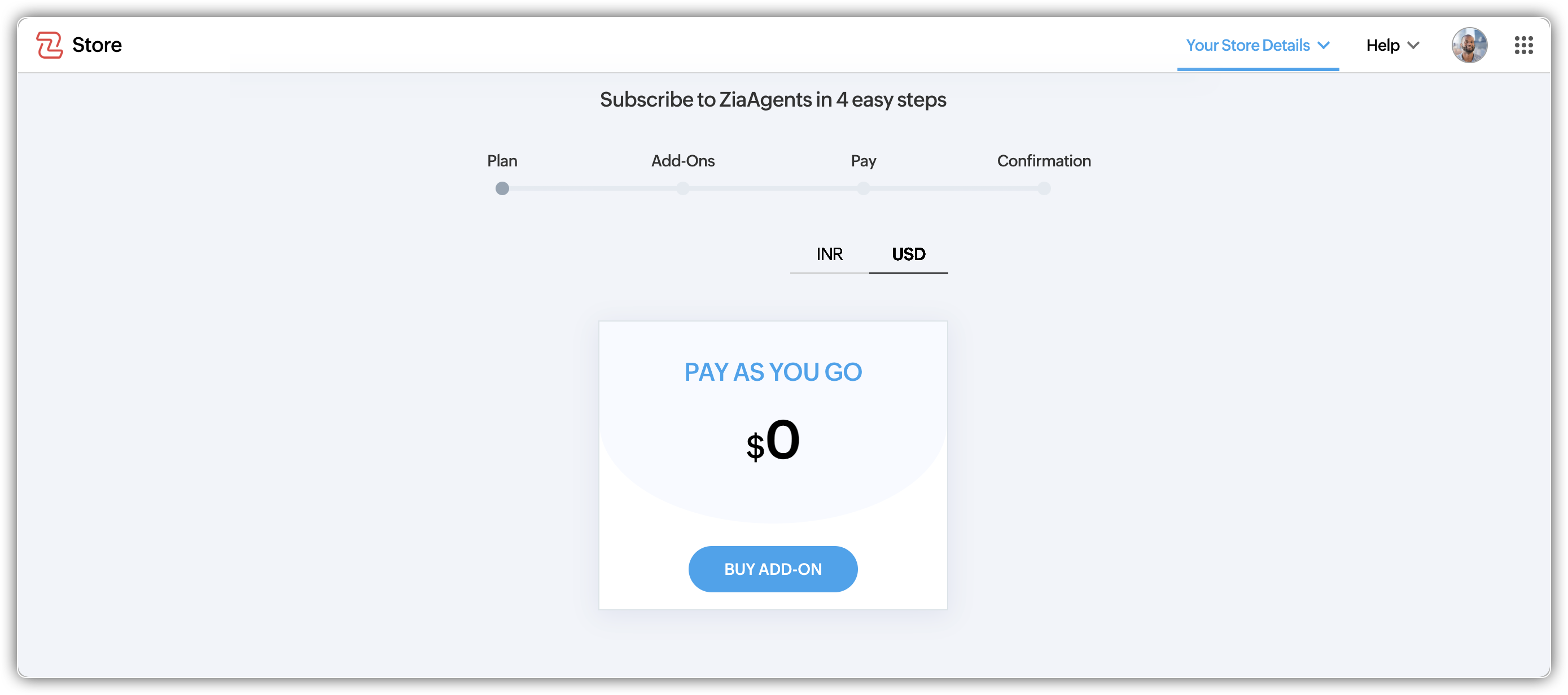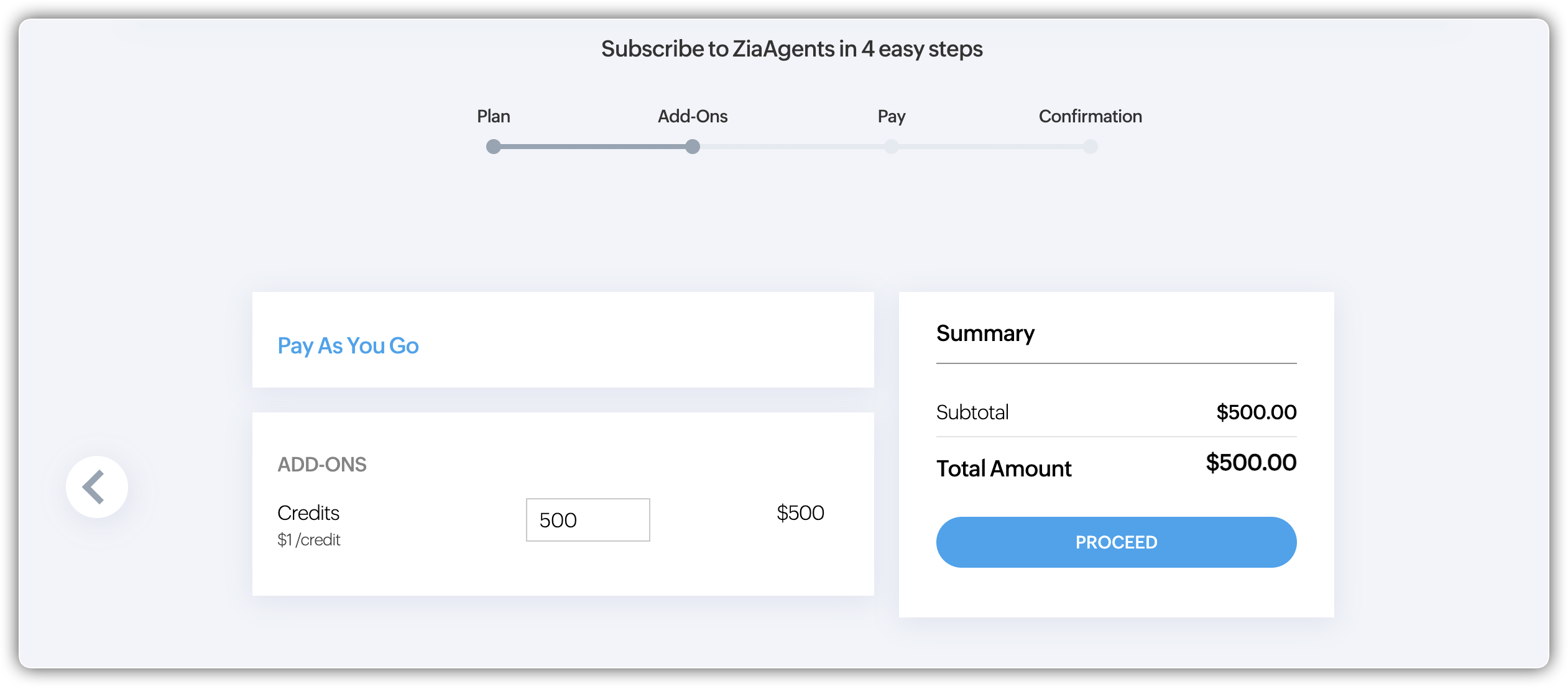 Under this section, you'll find details about your billing and Zia Agents credits.