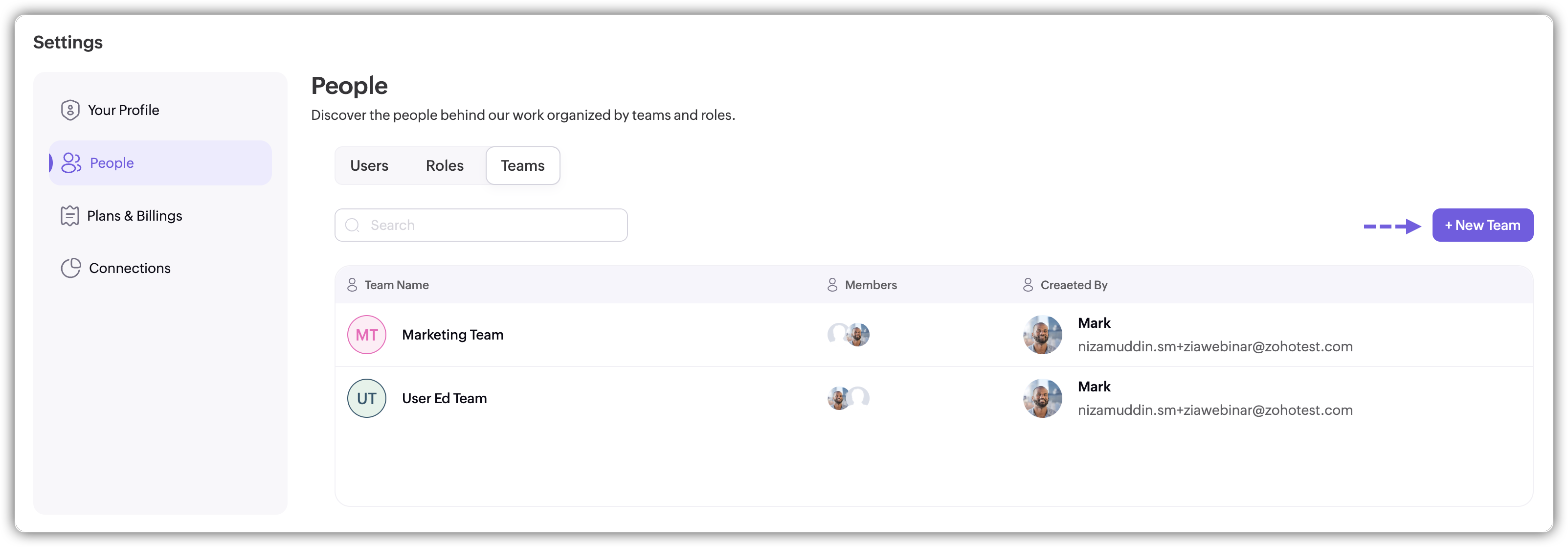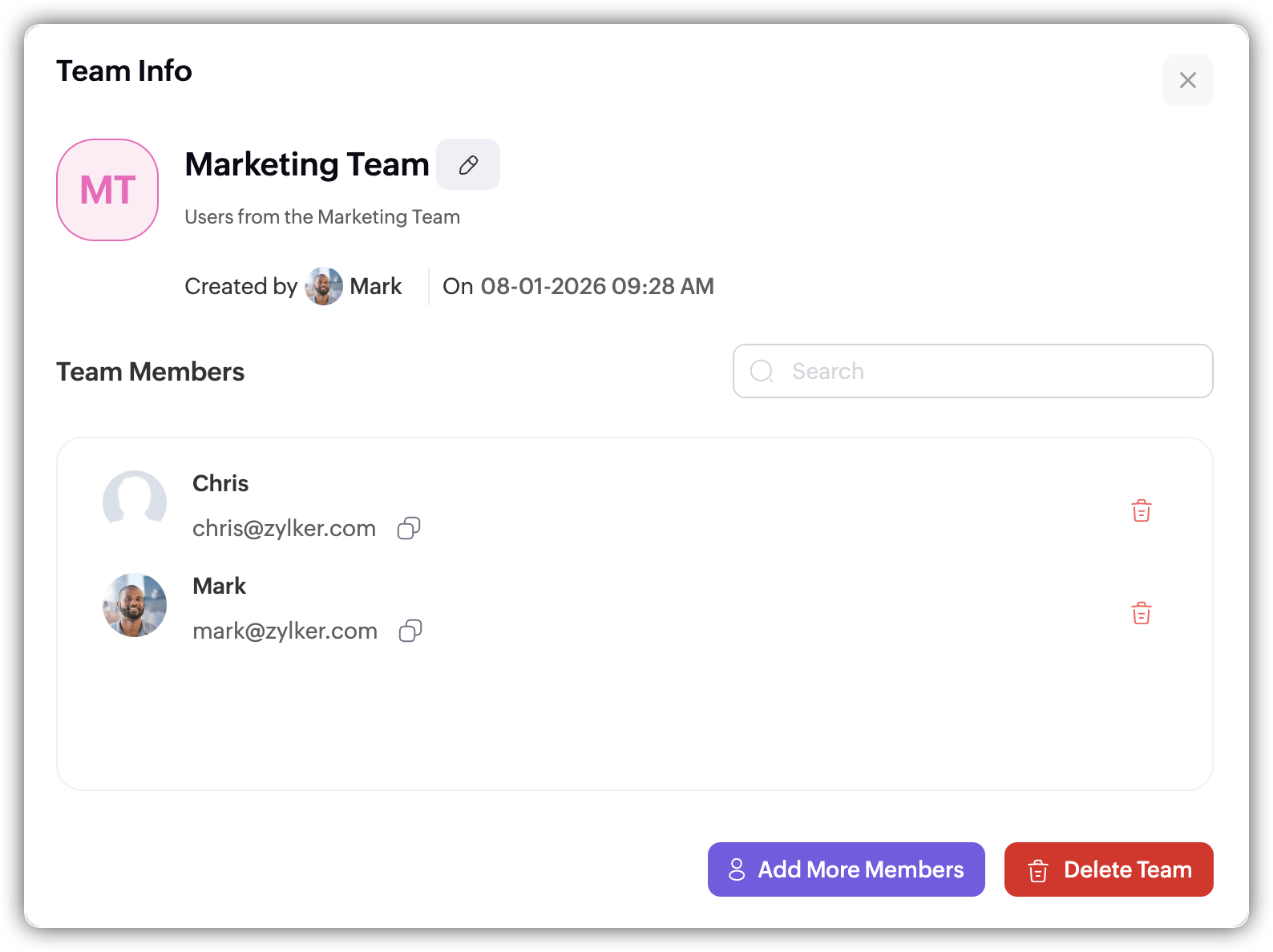 You can also modify an existing team, change its name, add or remove users, as well as delete the team as required.