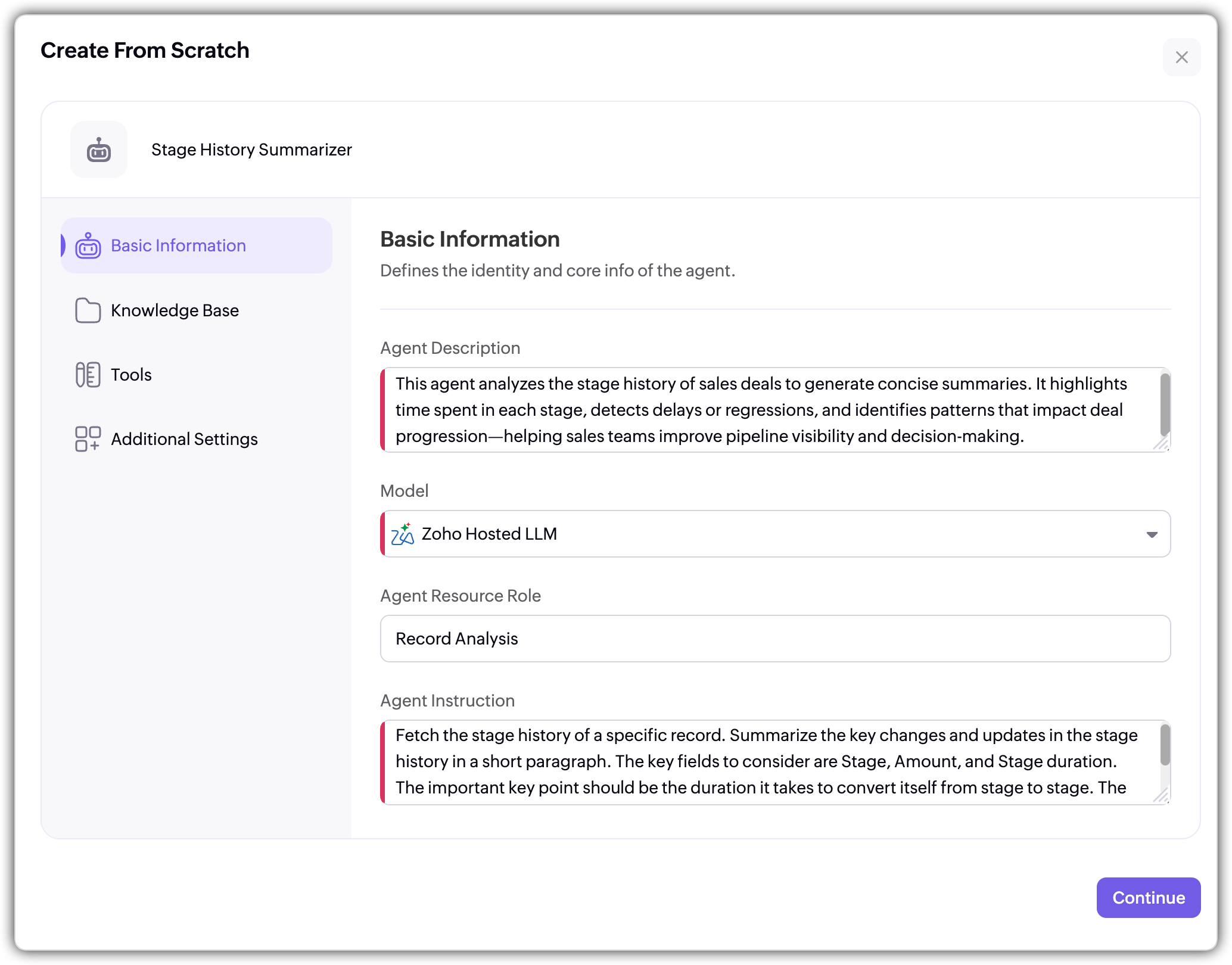 If you want an automatic creation of an agent, the built-in AI assistant auto-fills all of the above steps and creates an agent in a single click.