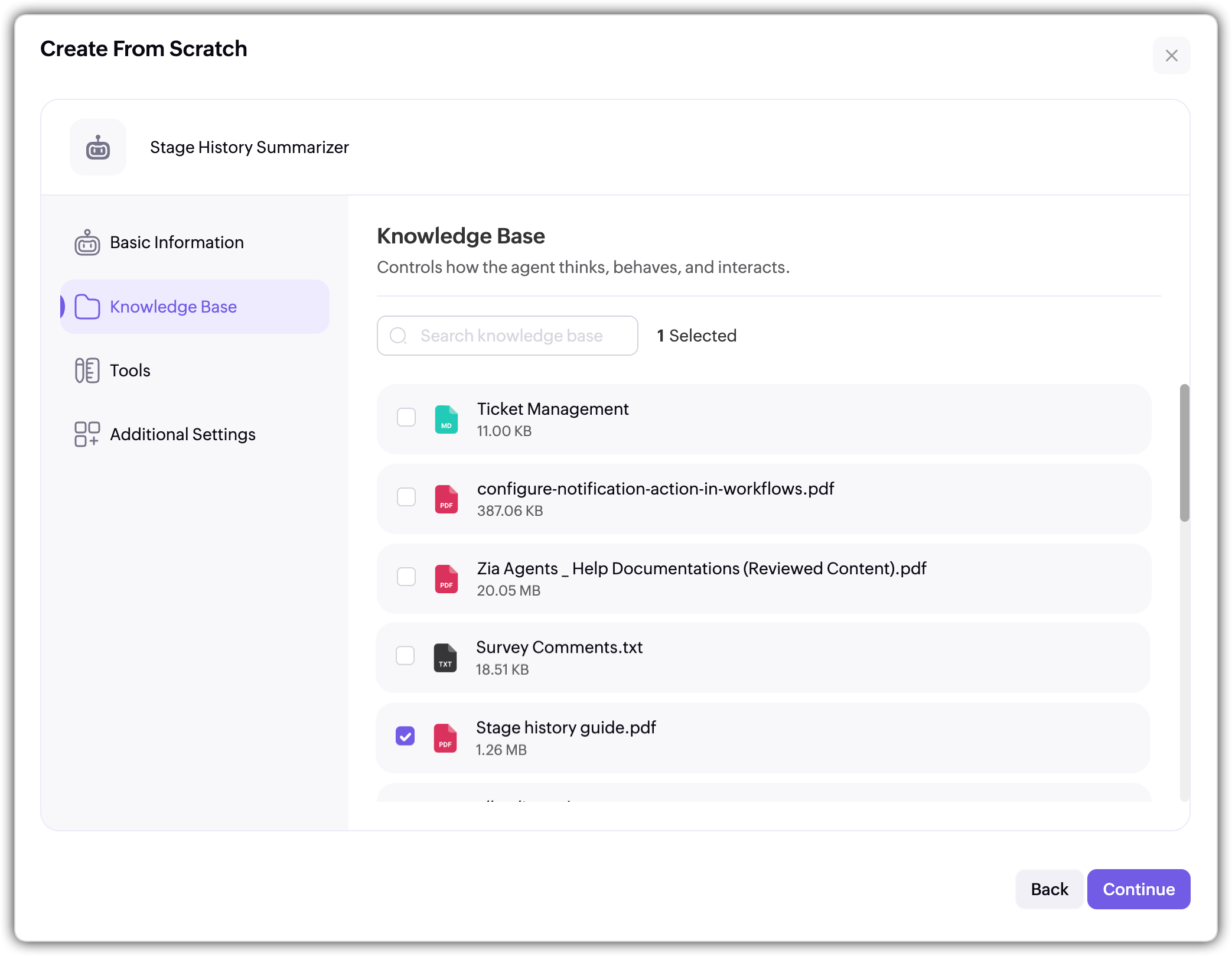 Note: The Assistant can also upload relevant documents and tools on its own if you're not sure which ones are relevant or if they’re not specified.