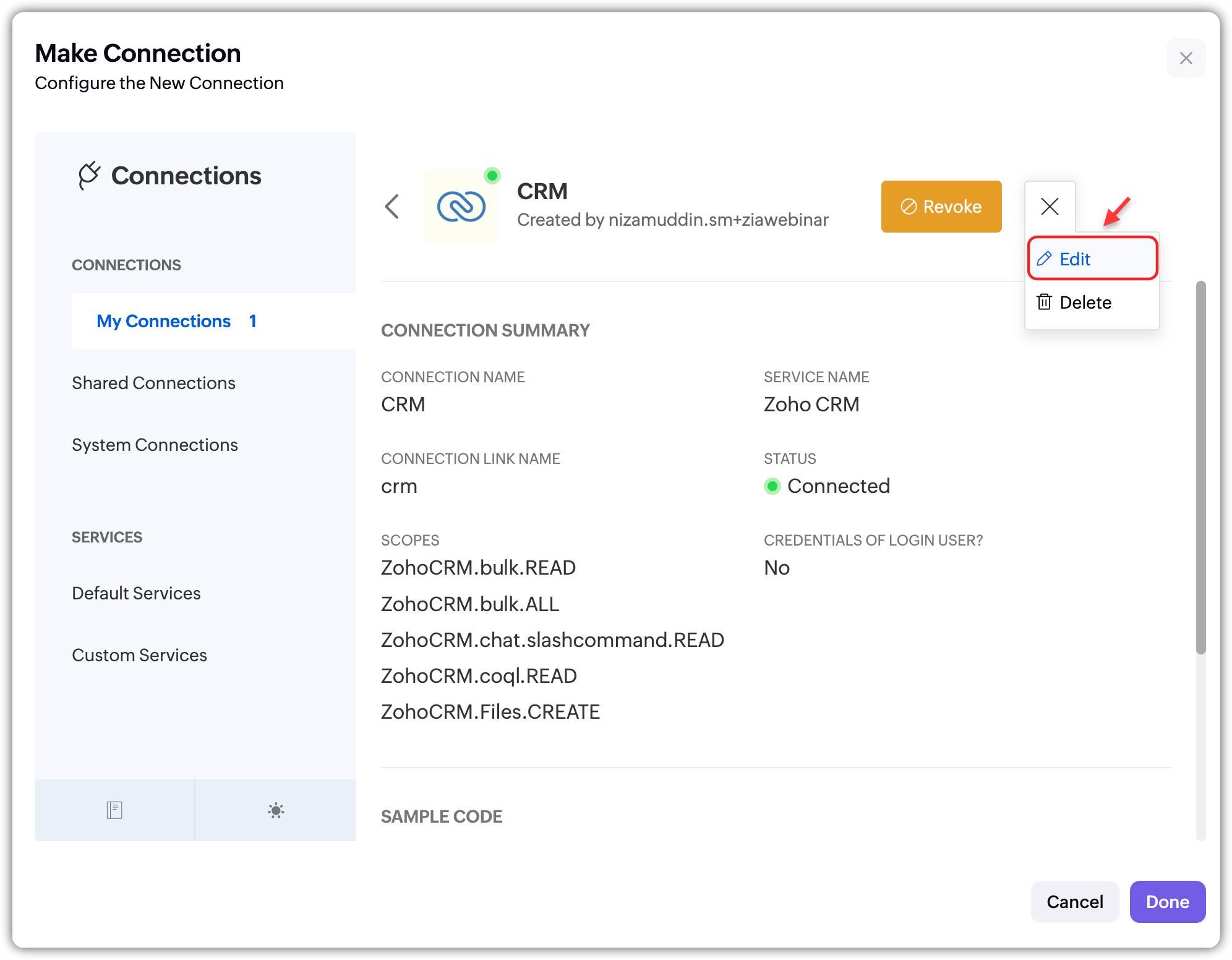 Valid connections to the services it will interact with (e.g., Zoho CRM, Desk)