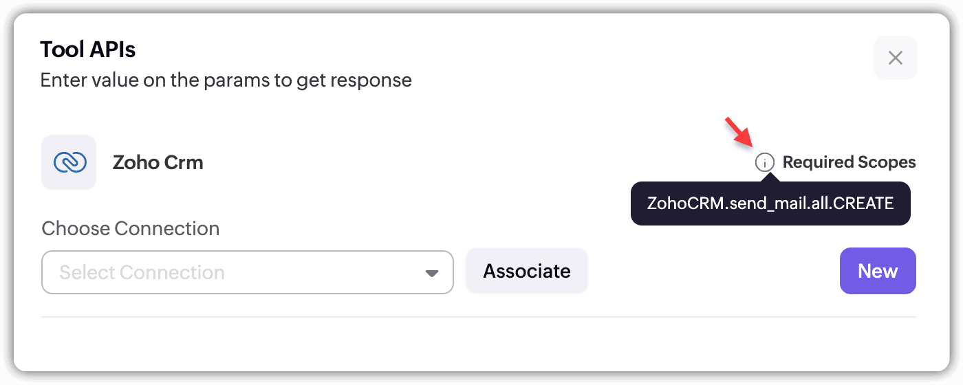 The scopes required for your tools are listed in the tooltip of Required Scopes.