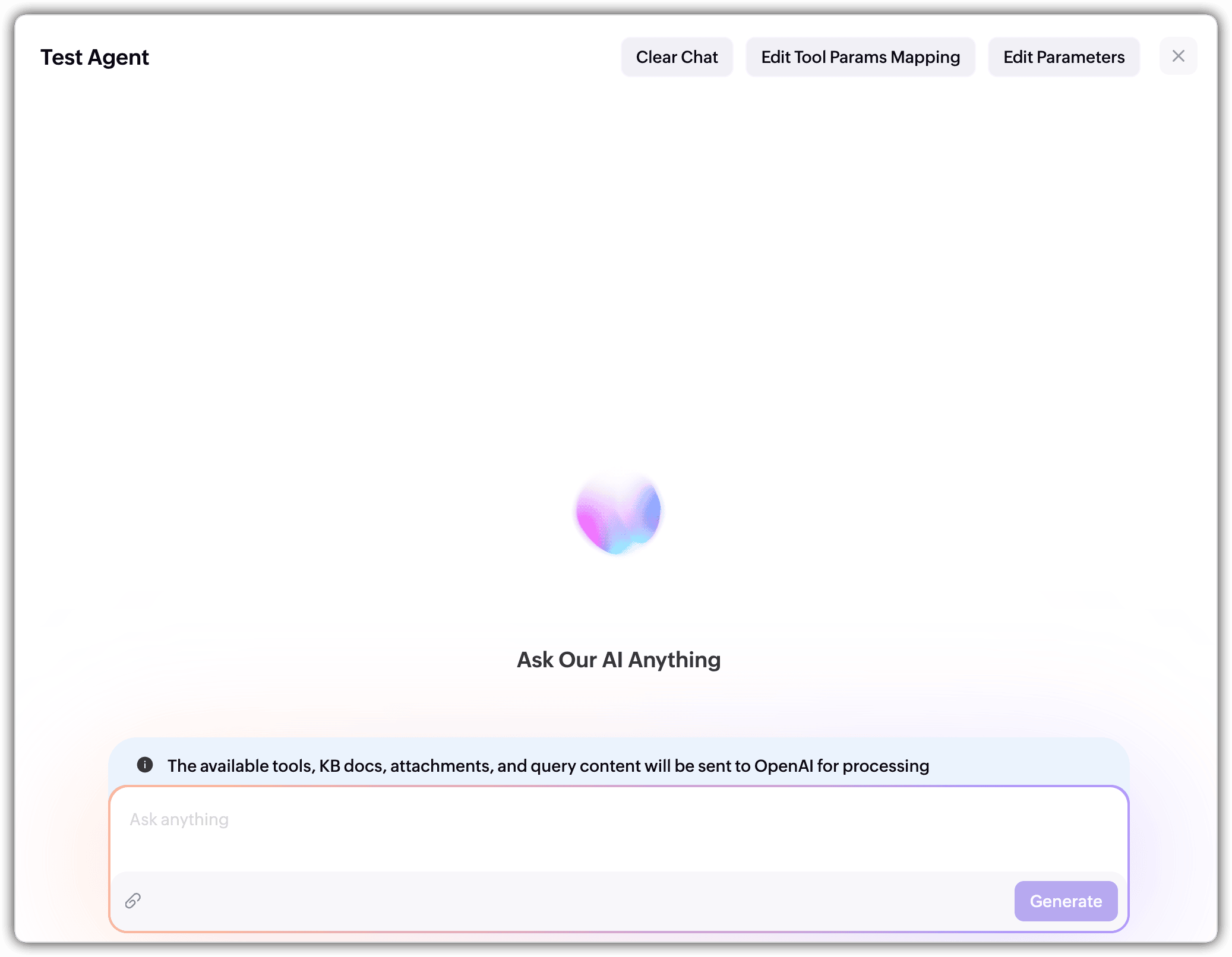 - On-Trigger: If you want the values to be dynamic, the moment the agent is triggered, the value will be passed. You can map this parameter under Tool Parameter Mapping during the activation of the agent in your product.
