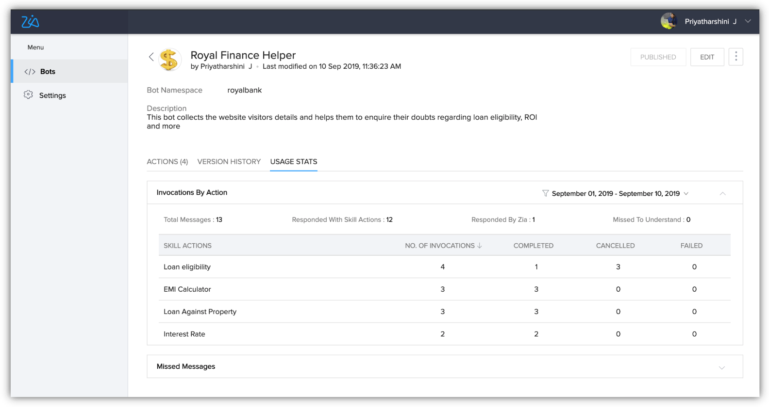 Broadly, this report classifies all the count of all messages processed by a bot into the following categories.