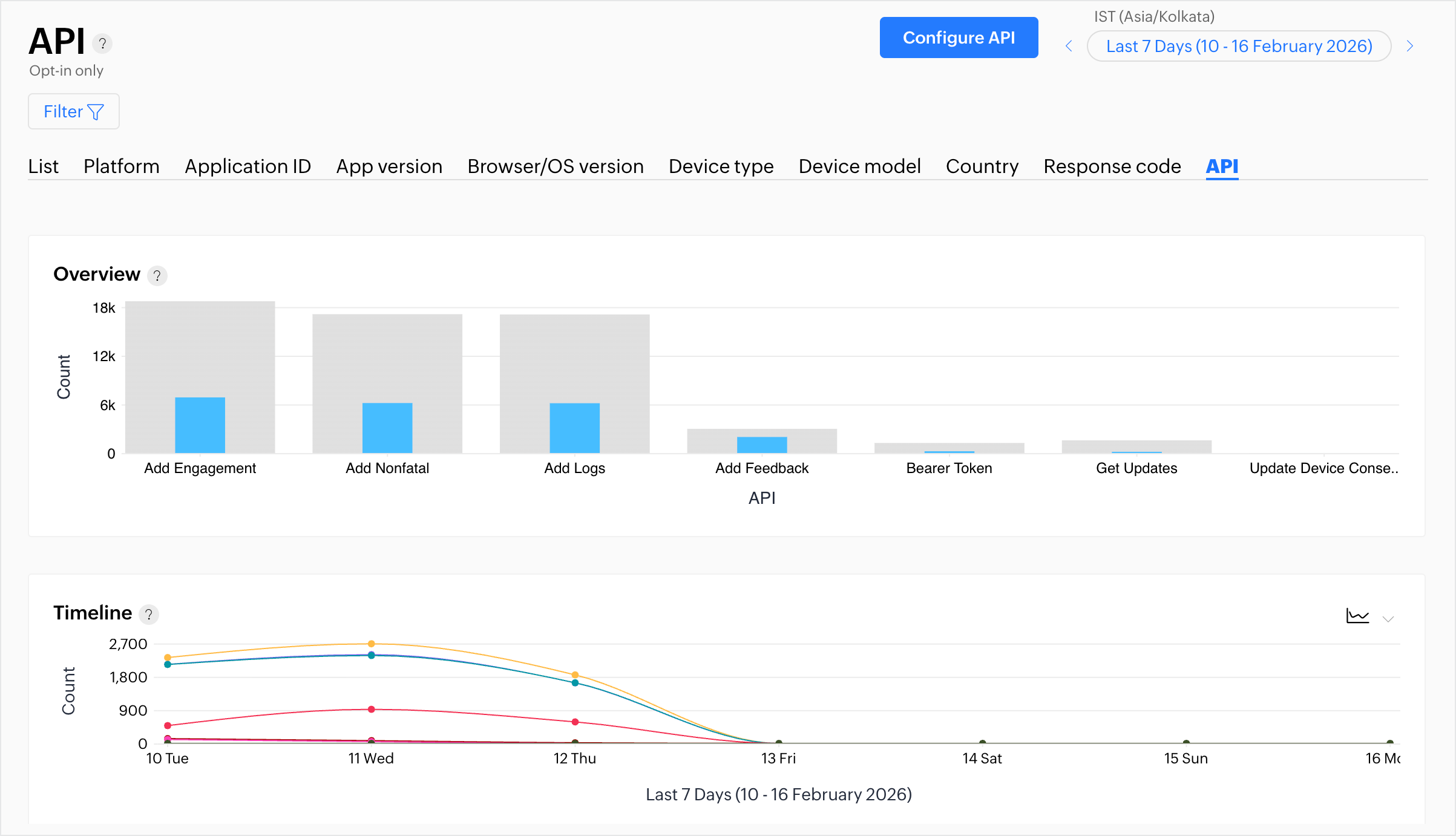 2. Click Configure API to add the APIs that you want to track.