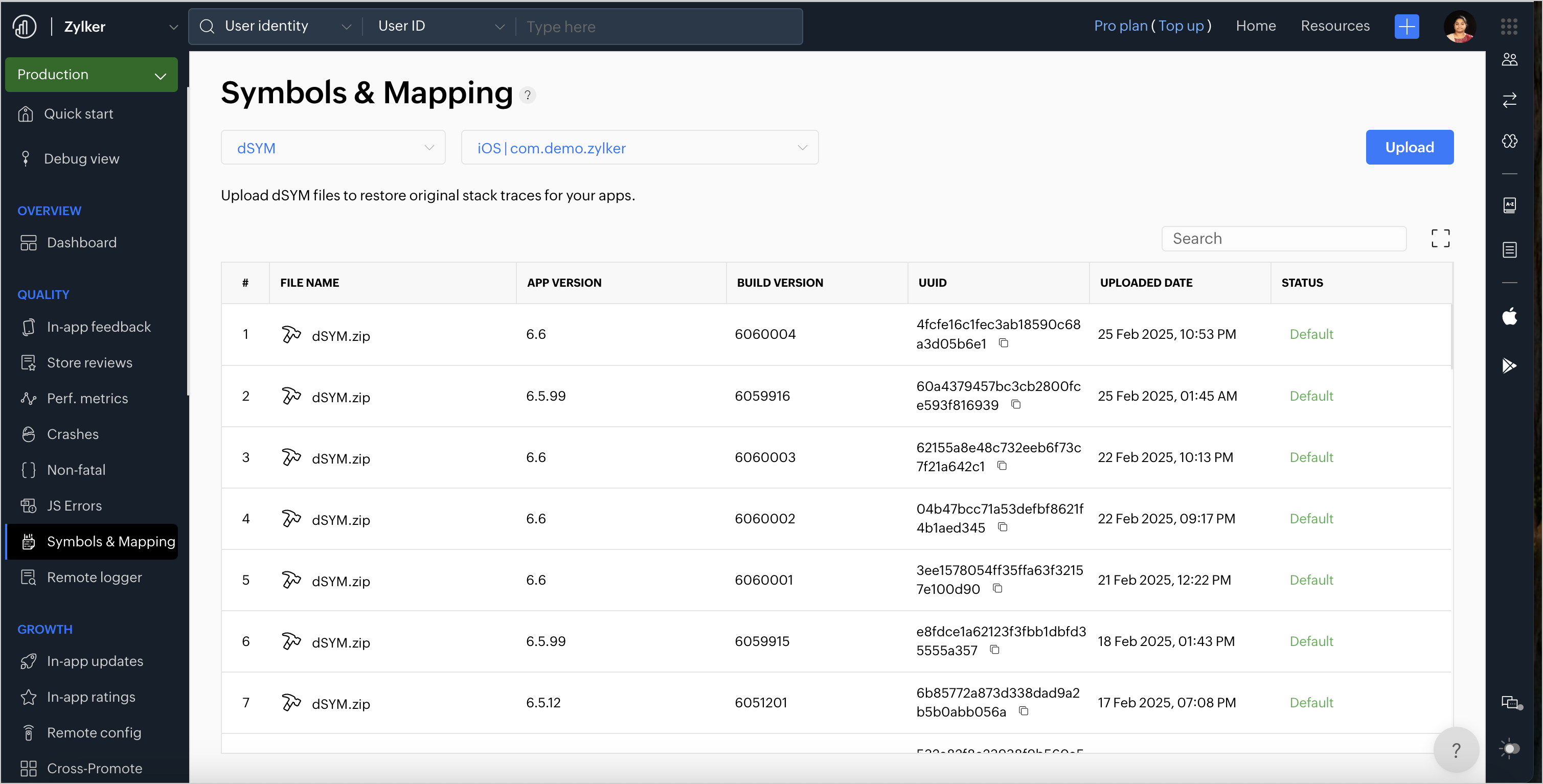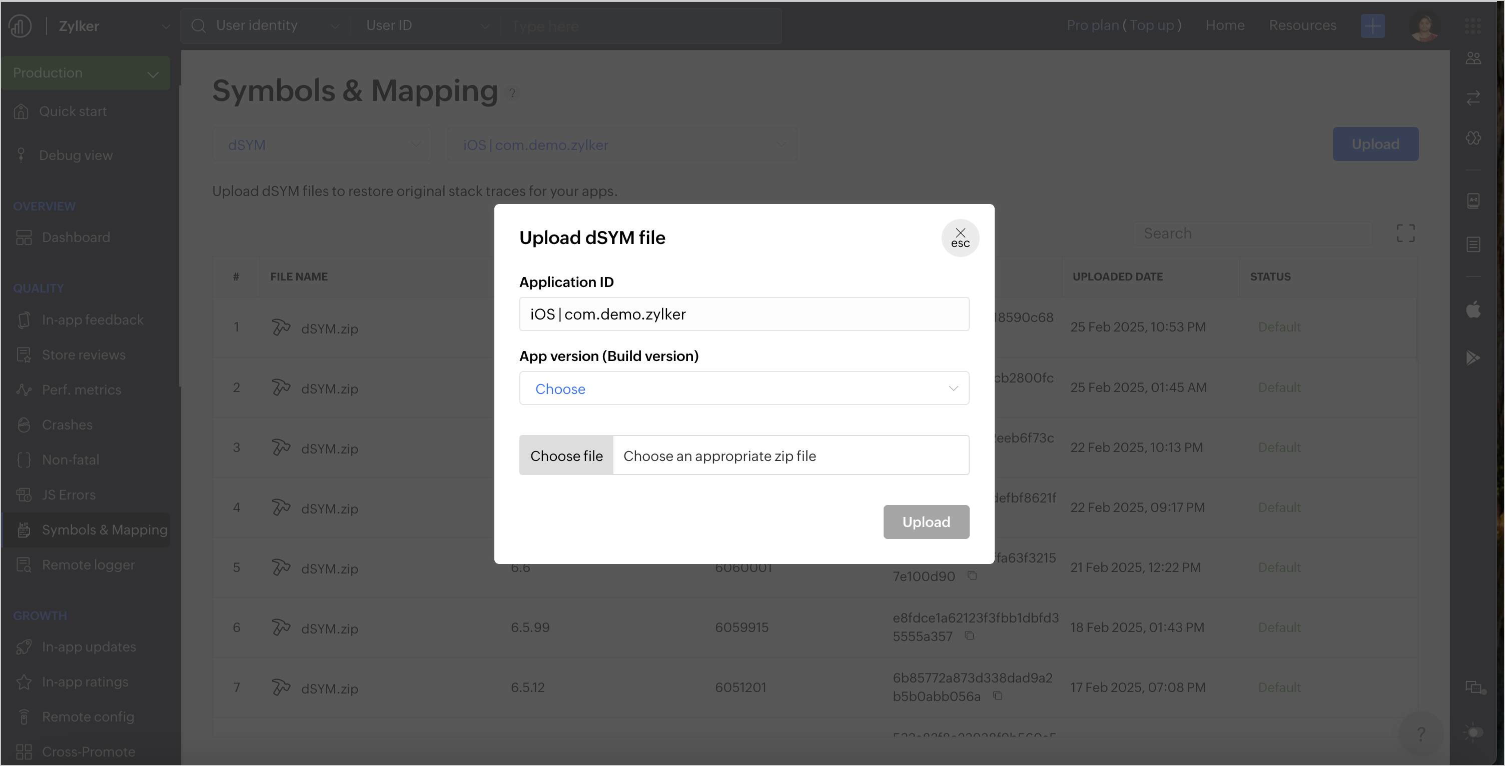 Apple apps (iOS/iPadOS/watchOS/tvOS/vision OS) | dSYM files |