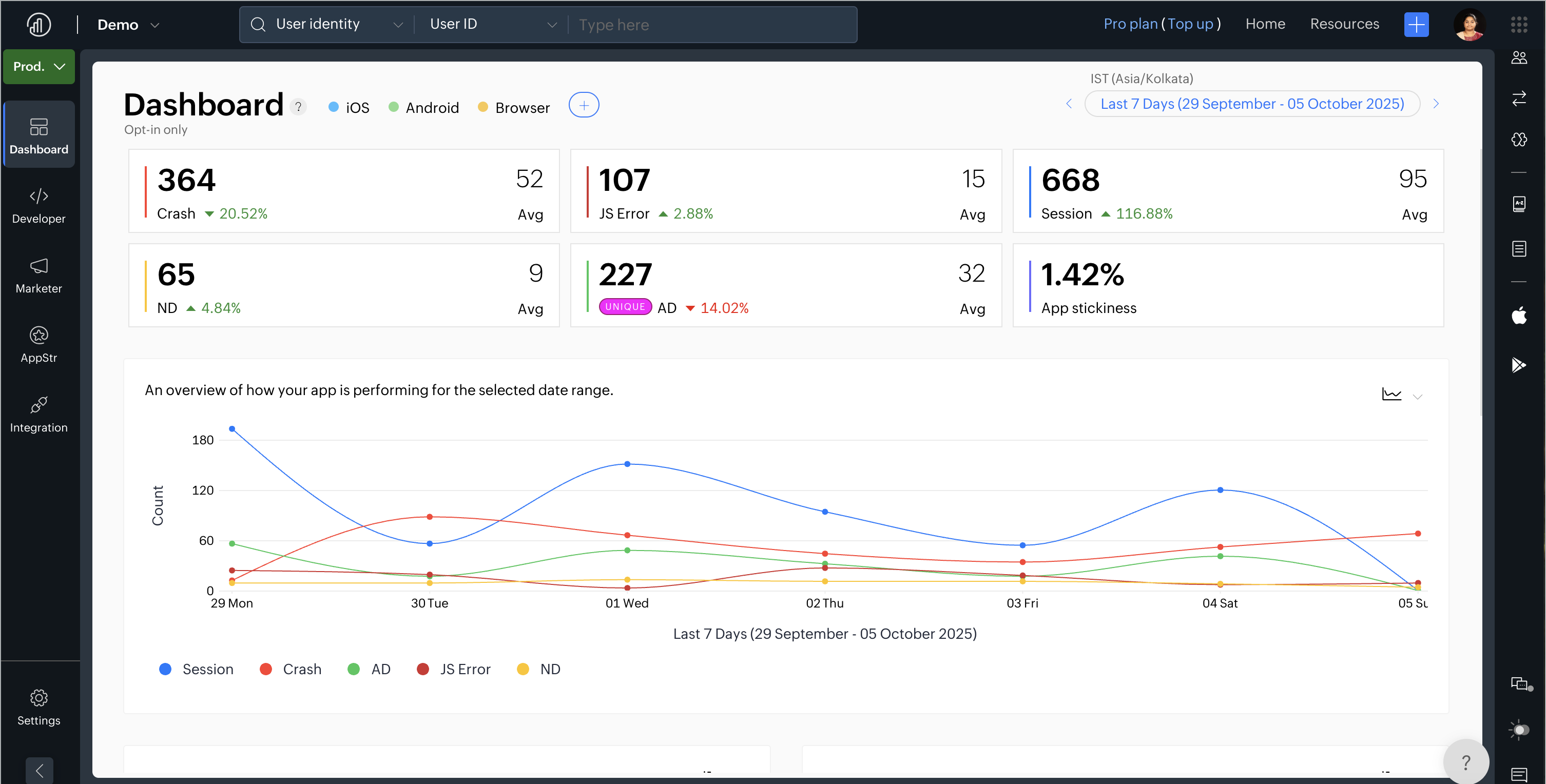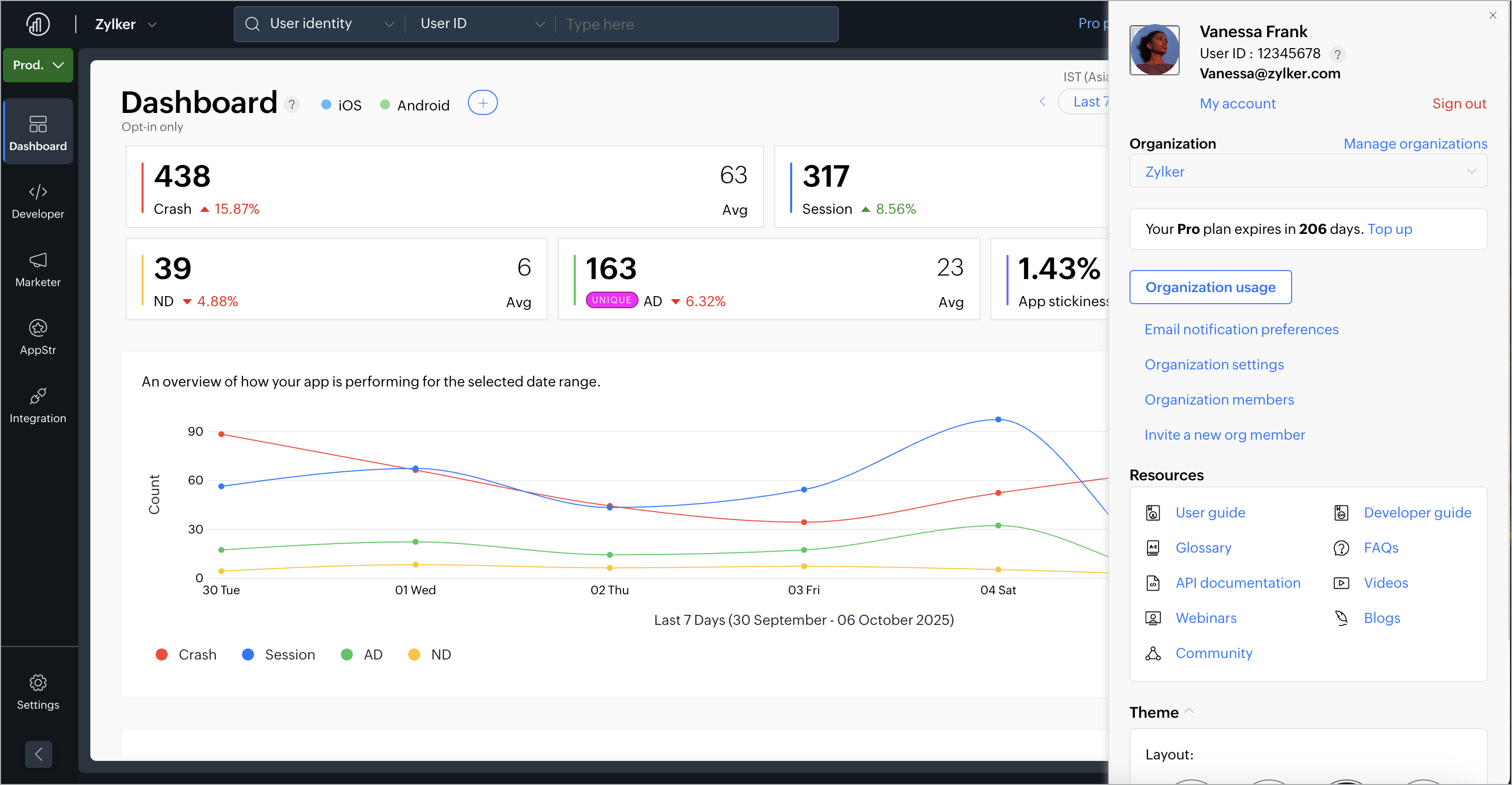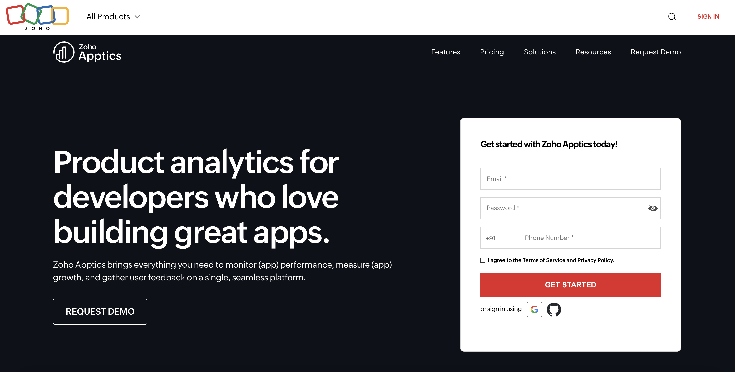 Zoho Apptics is the privacy-friendly product analytics solution that provides you with in-app usage, engagement, performance, and growth monitoring for your mobile and web apps– all in a single console. Integrating your apps with Zoho Apptics empowers you with app-driven insights across platforms and optimize your app's user experience better for your users.