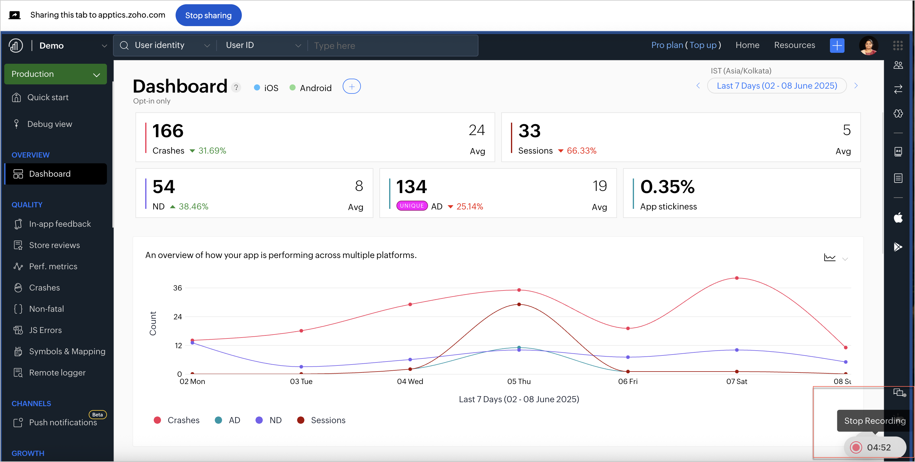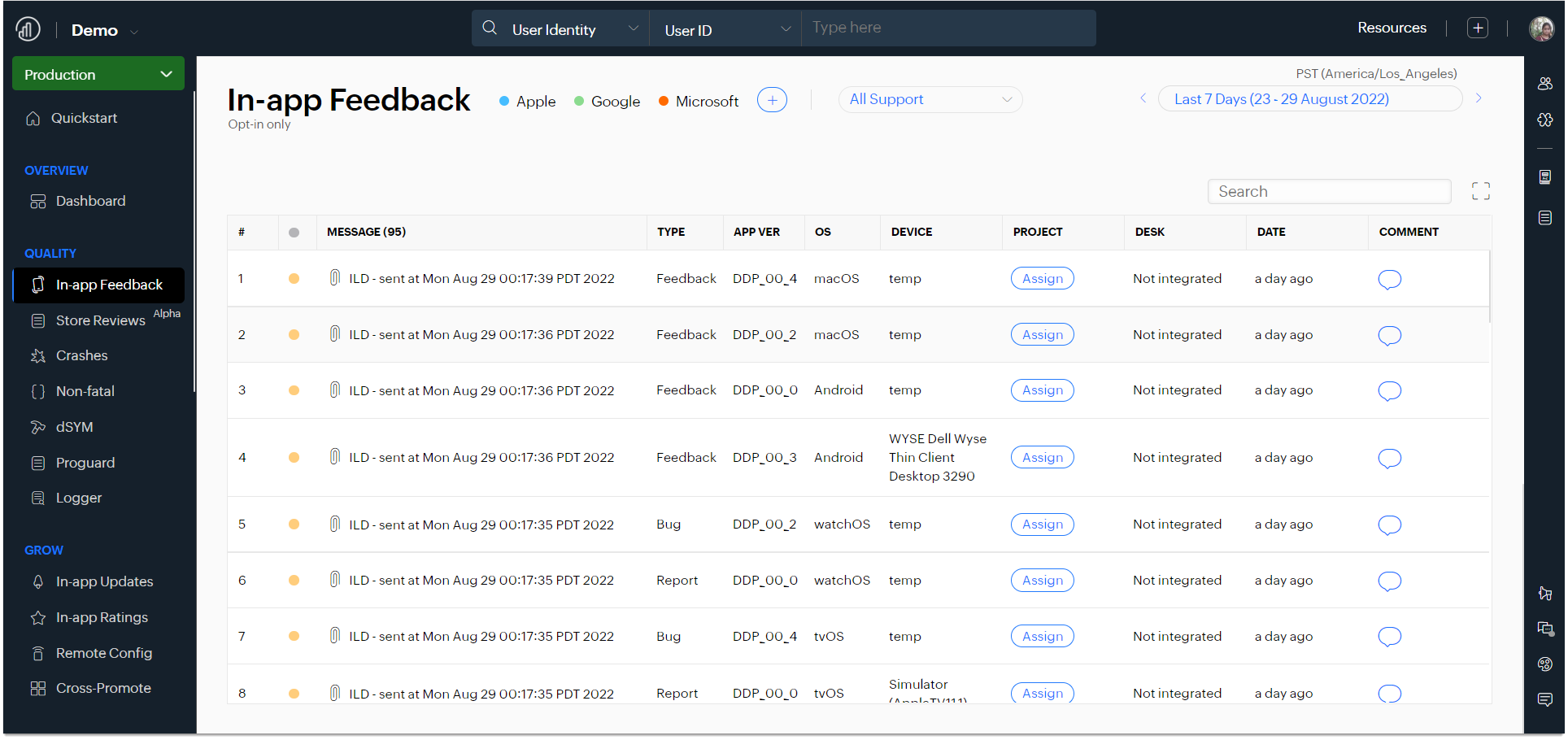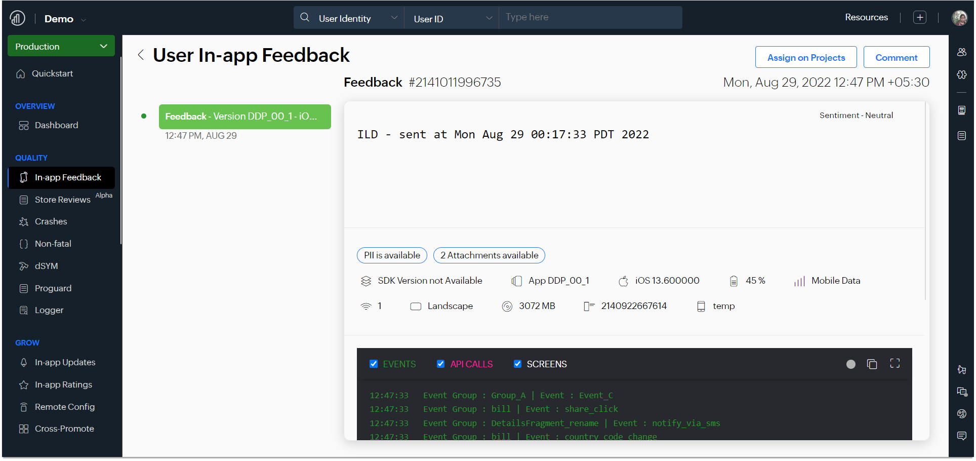 Performance and diagnostic metadata (Auto-captured by the SDK) |