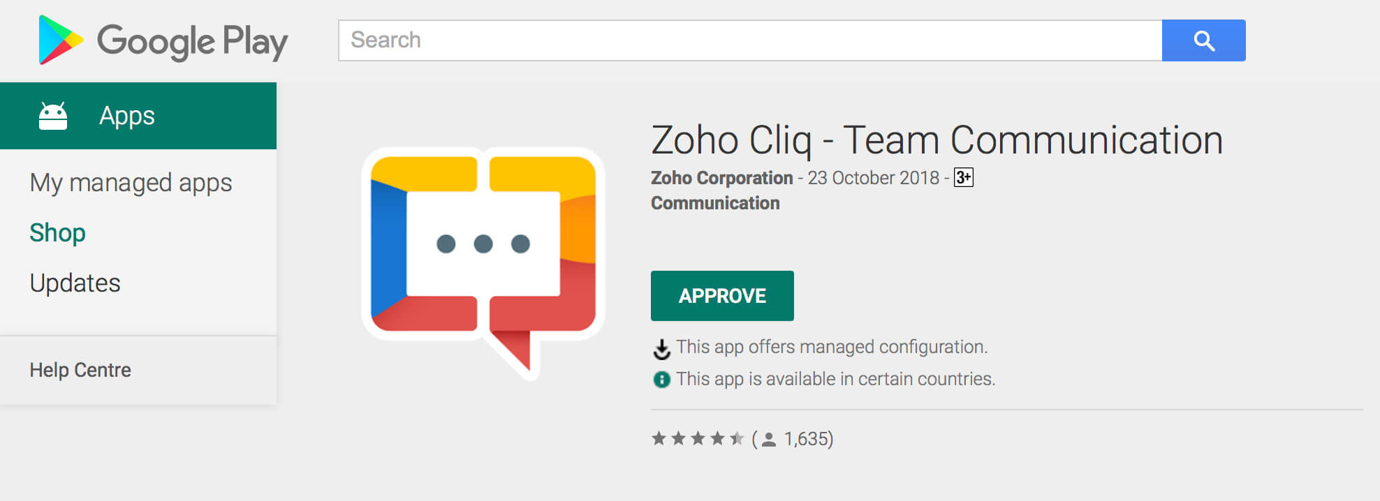 - Search for Zoho Cliq app, and click on the Approve button.