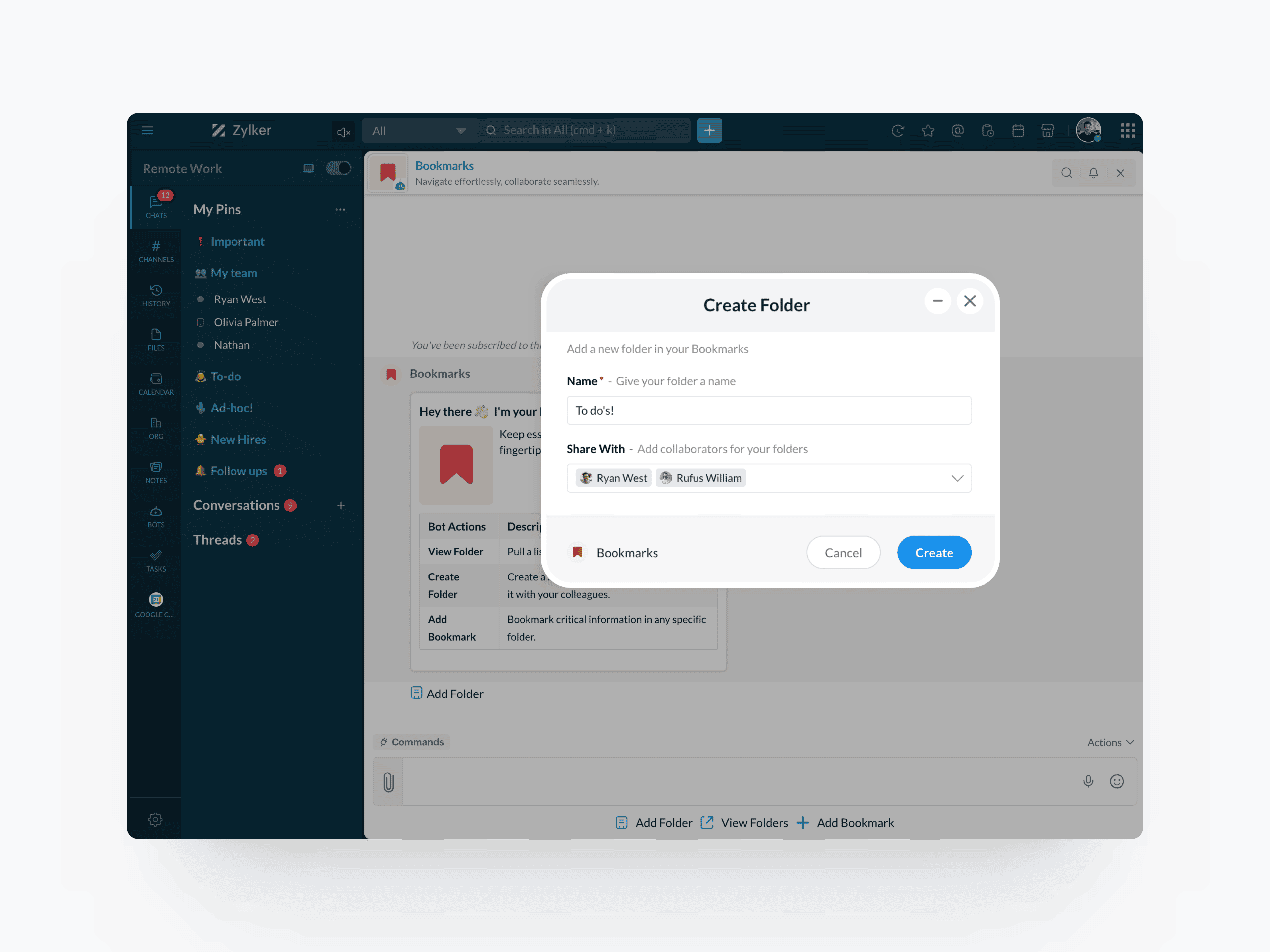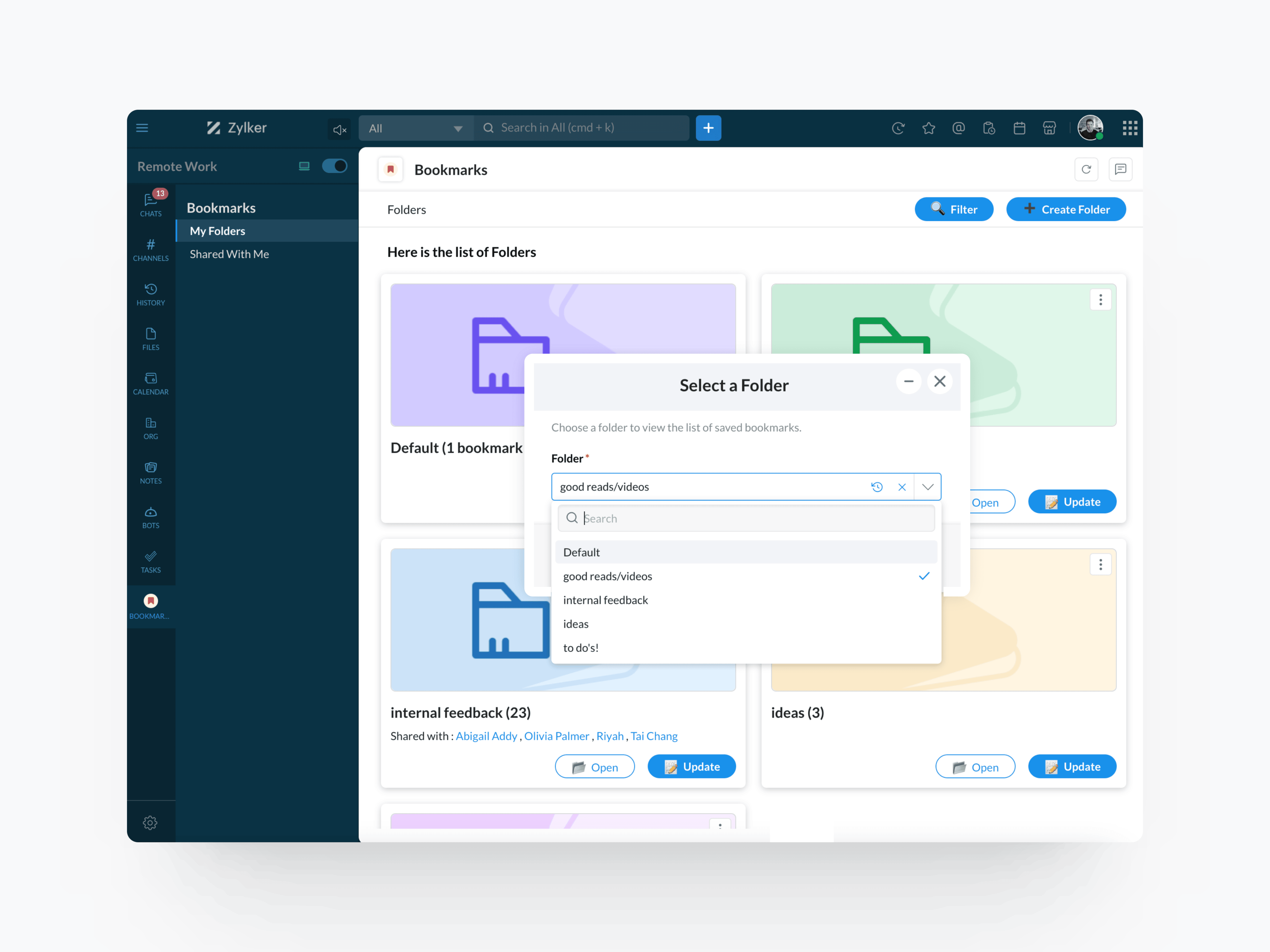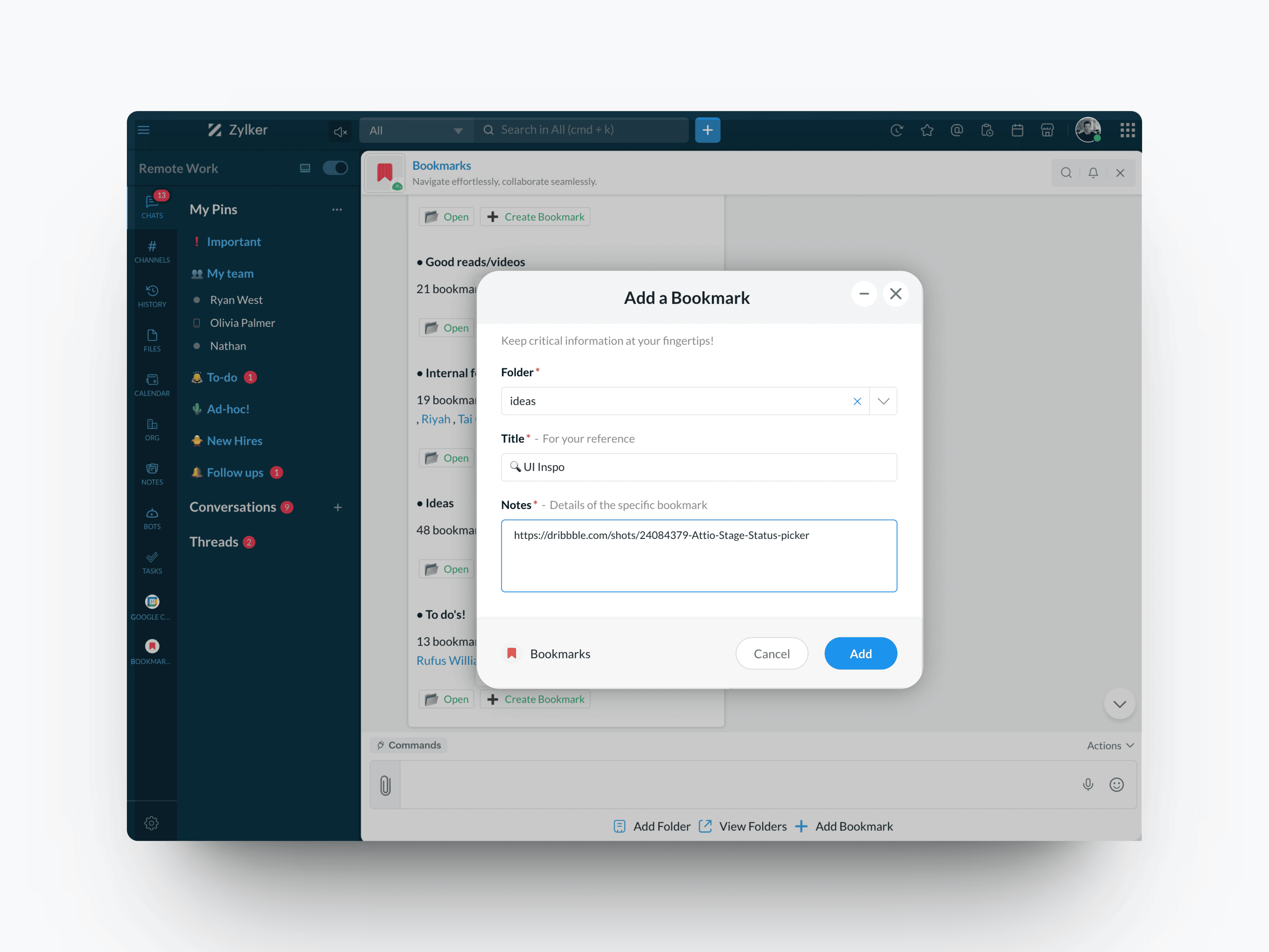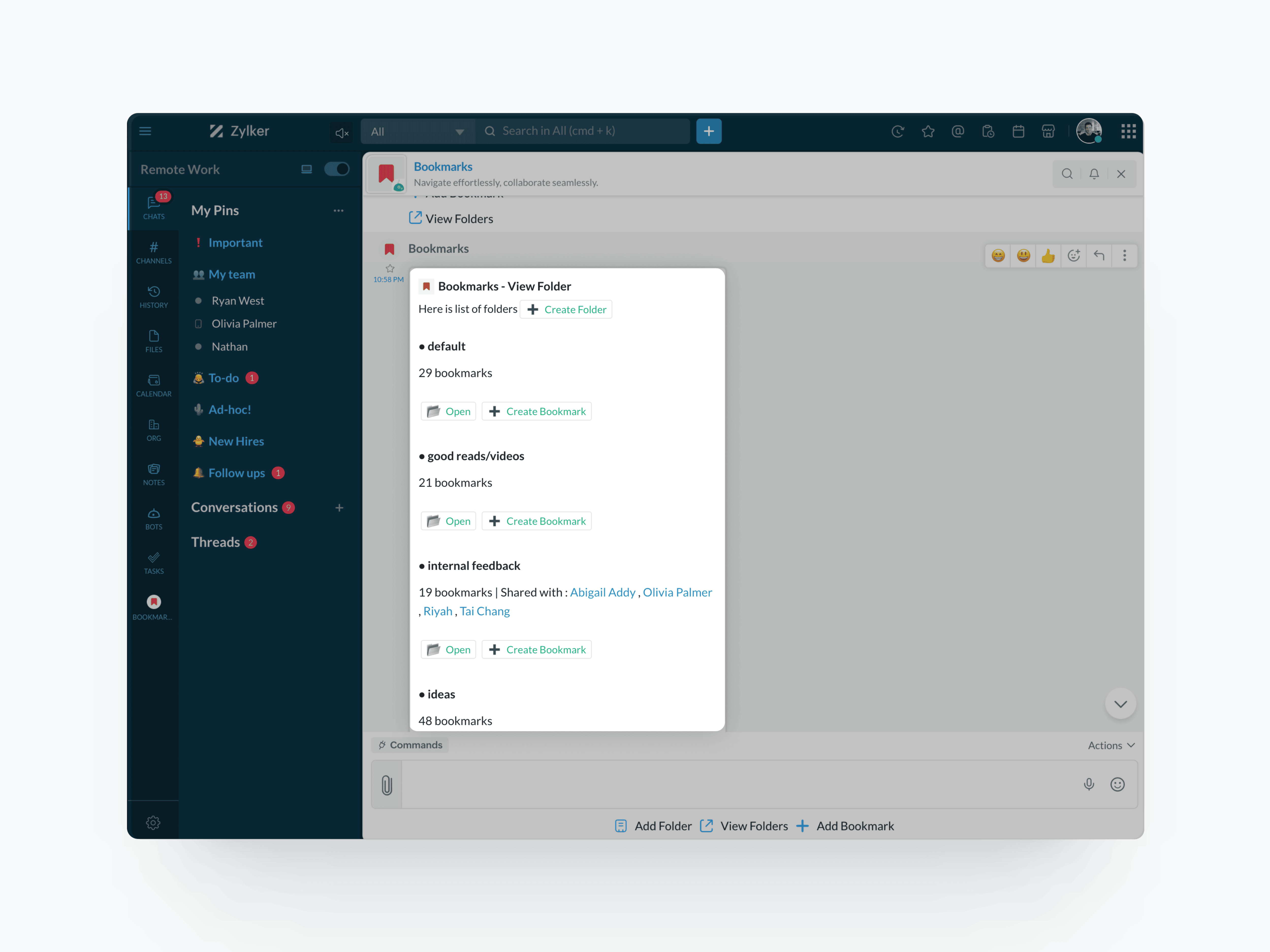 Add your Bookmarks to elevate your knowledge management experience in Zoho Cliq today →