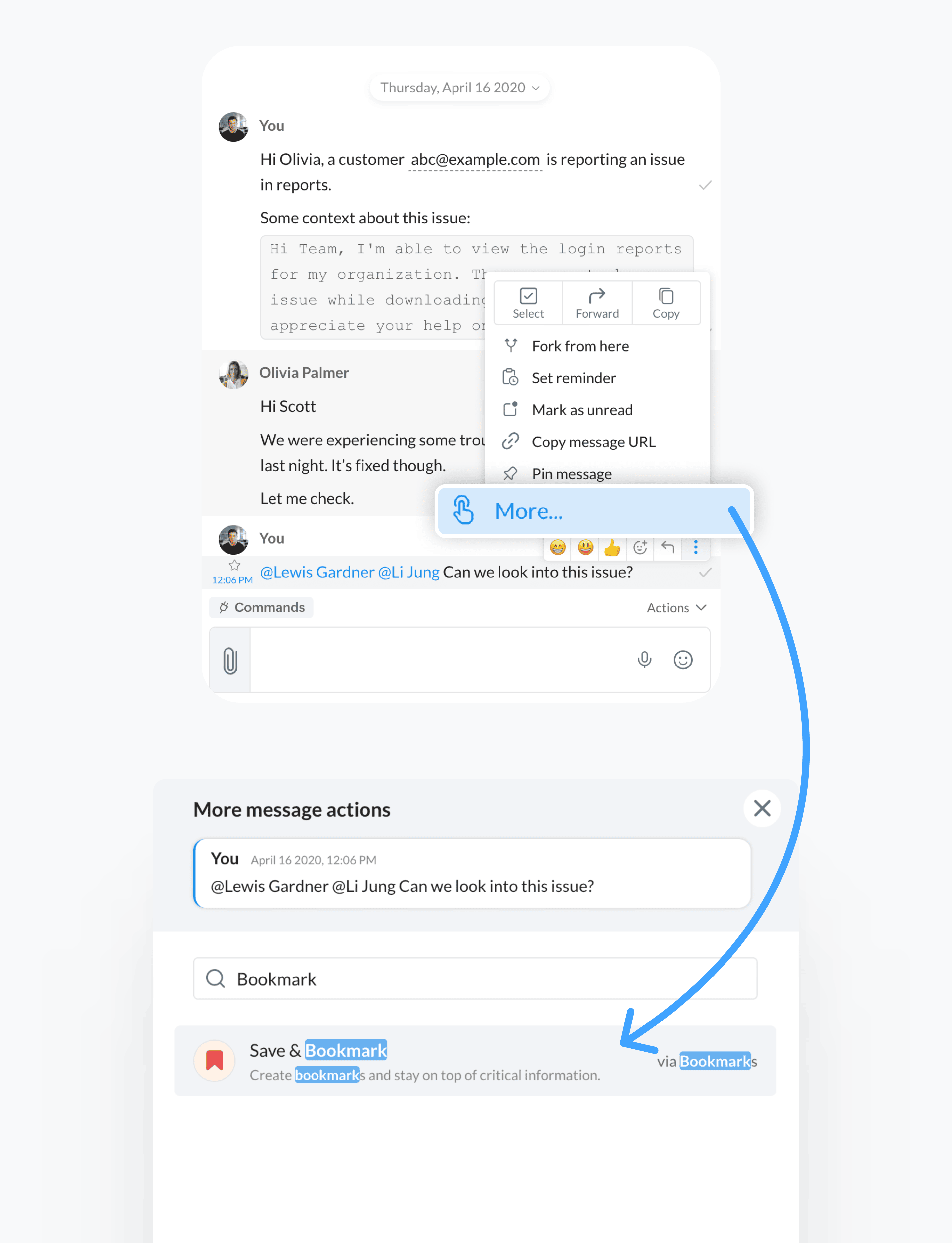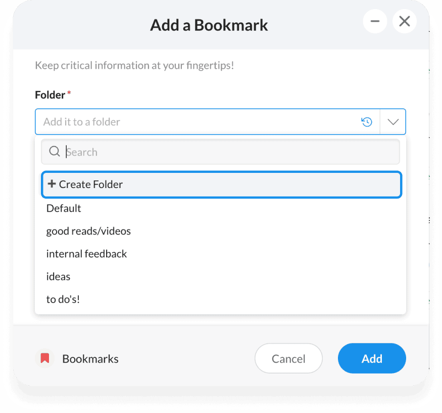 Quickly save important links, messages, and other resources for later reference. With just a click, users can add bookmarks, ensuring that valuable resources are easily accessible whenever needed and organized in Folders.