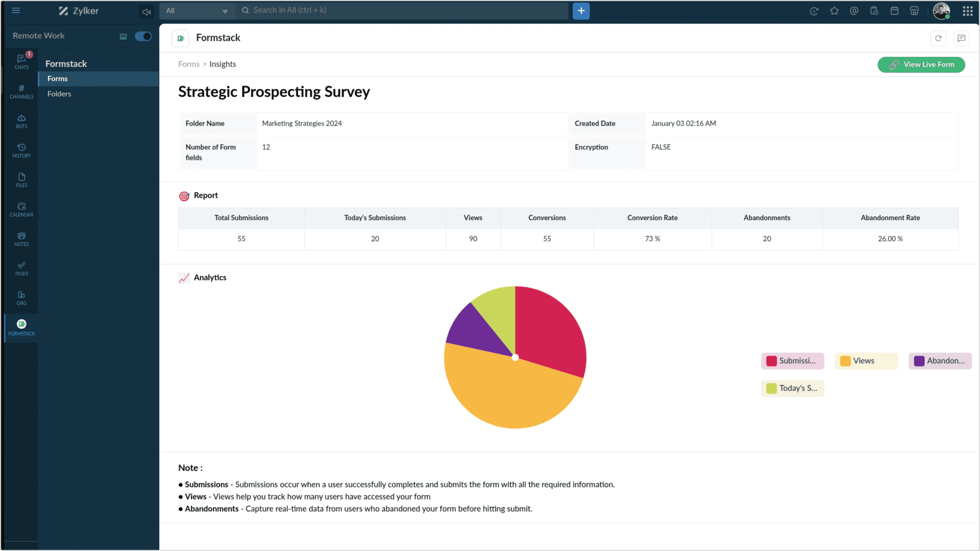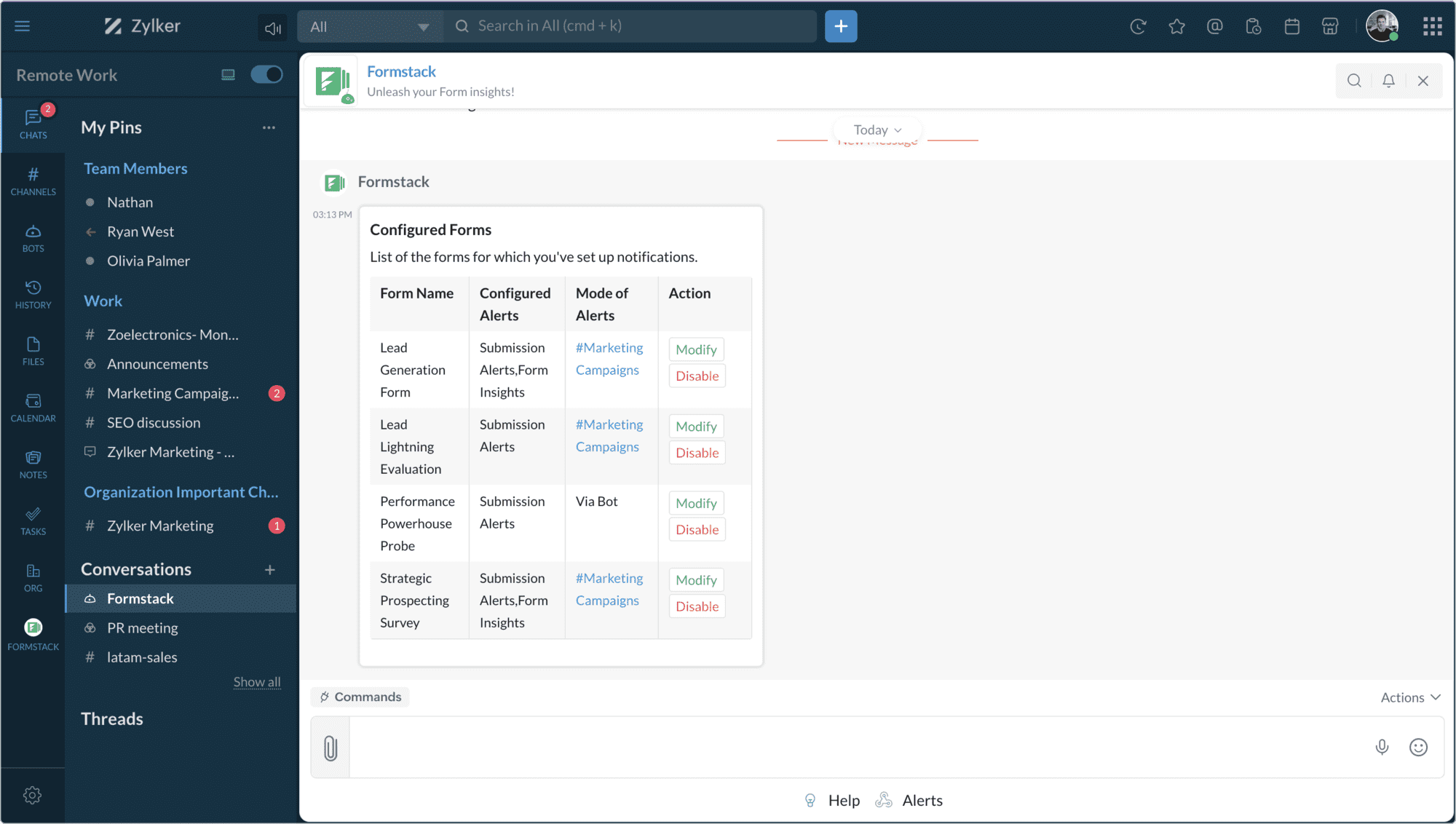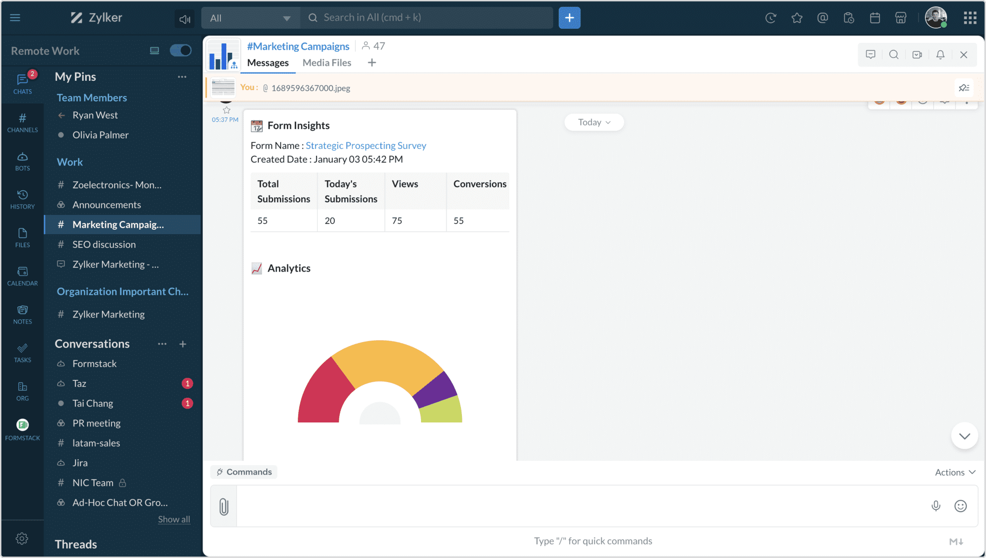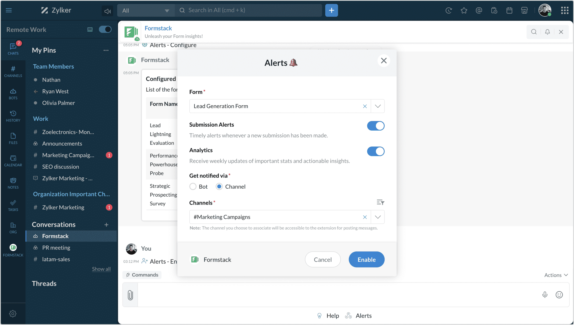 When you enable the Analytics alert, a bot message will be posted every week on the stats and insights of the form.