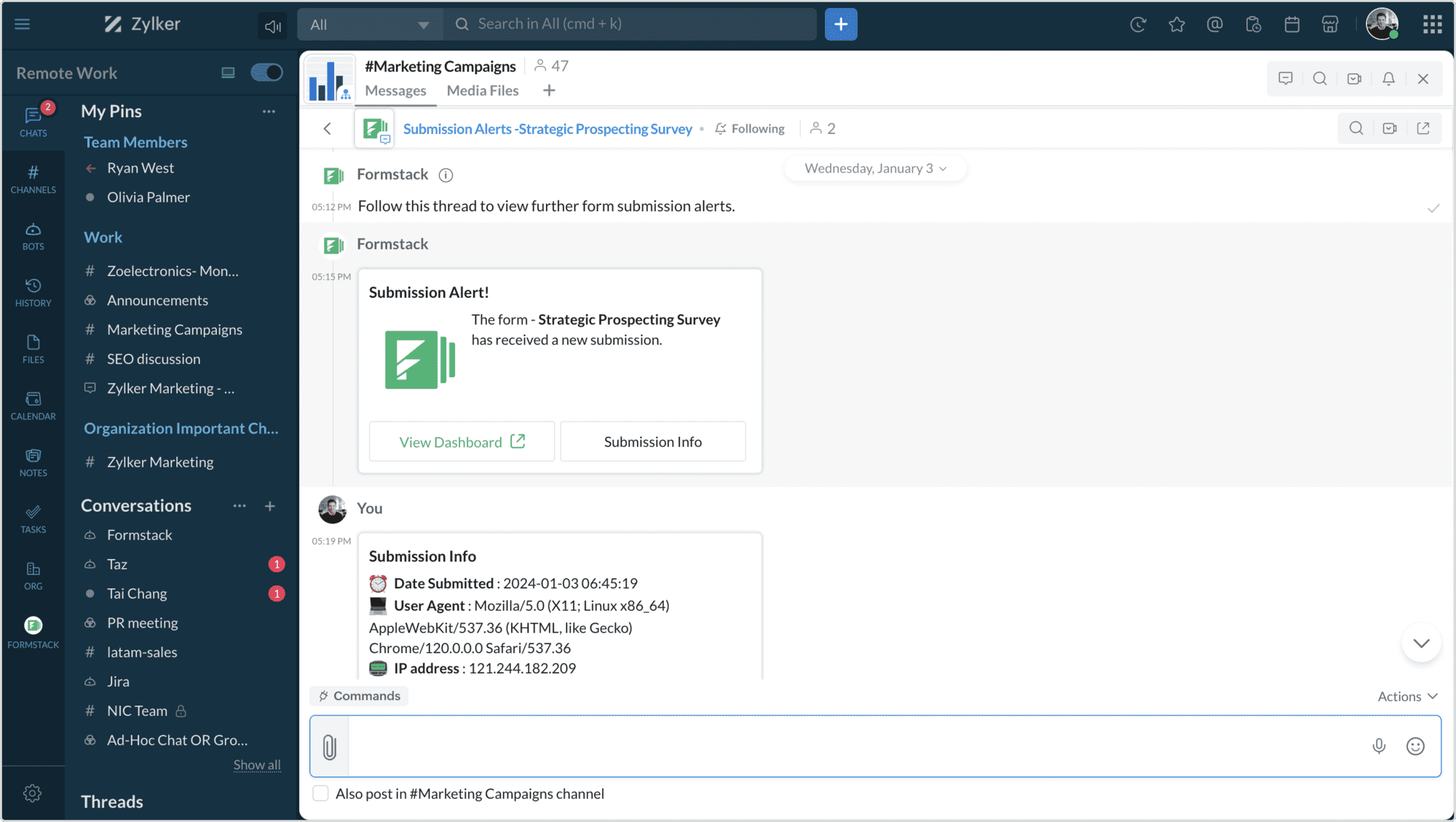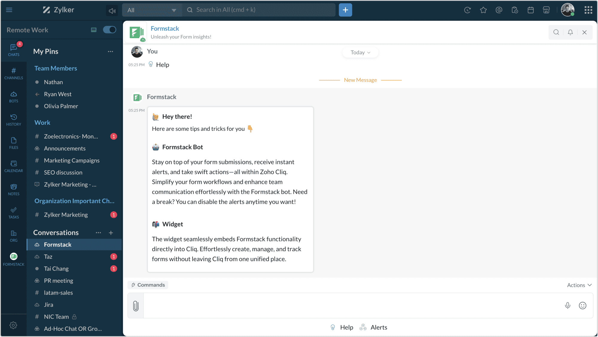 Choose where you want your form-related notifications to be posted: in your FormStack bot or any channel.