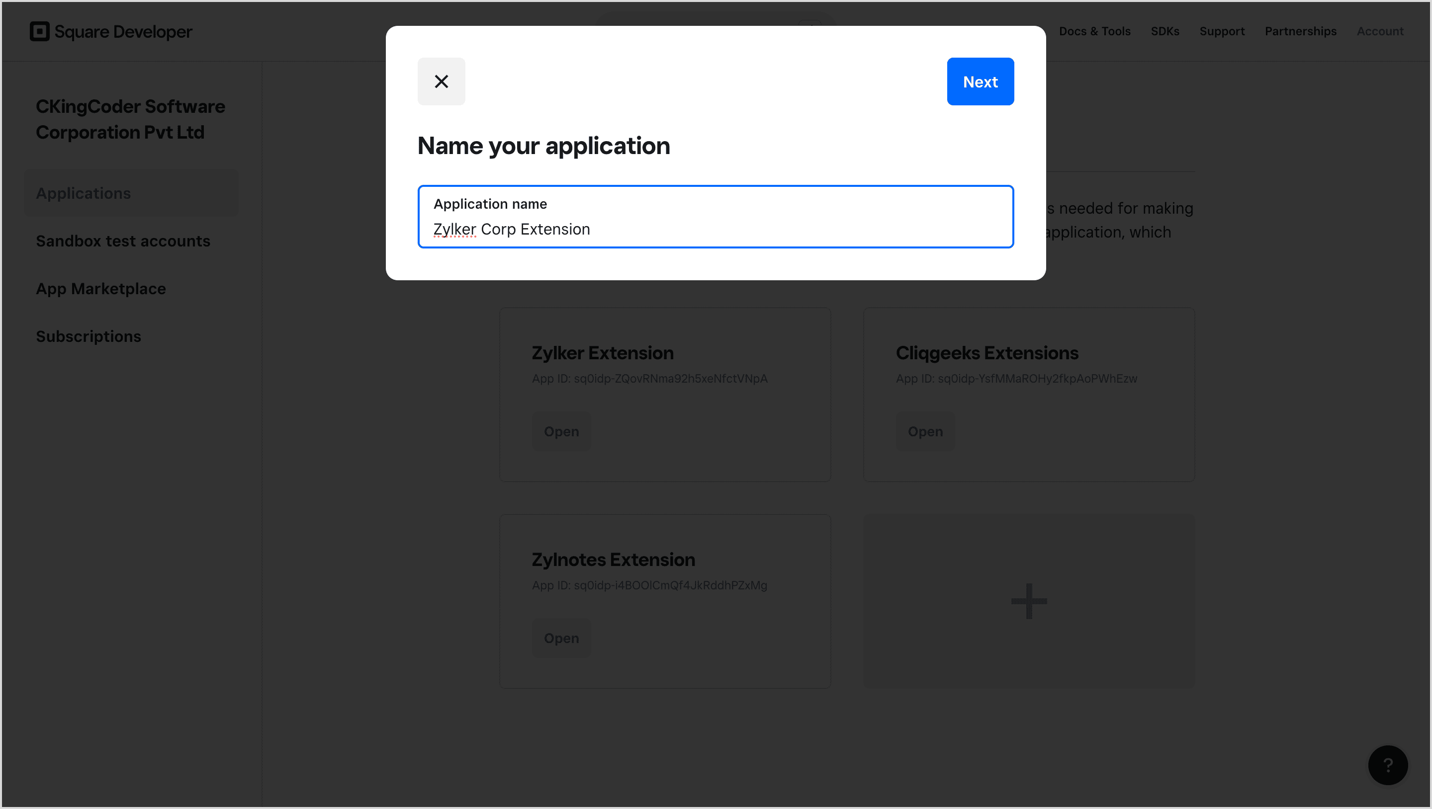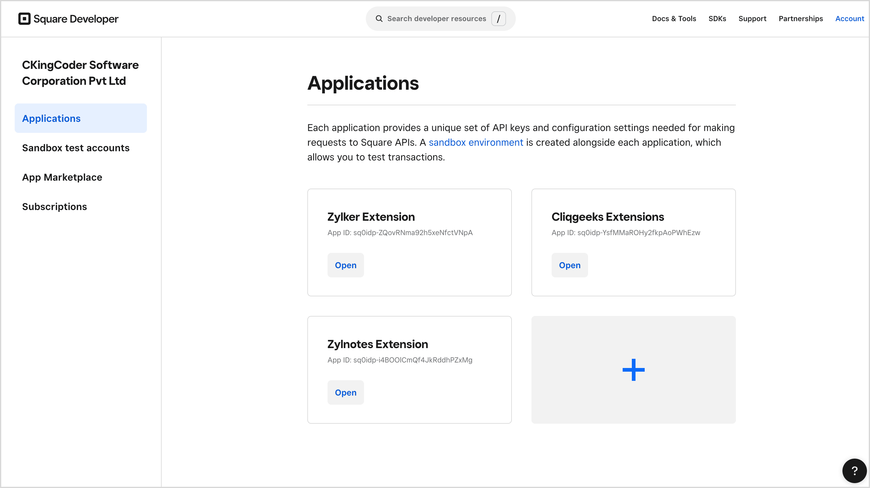 - Navigate to your developer console in your Square account.
