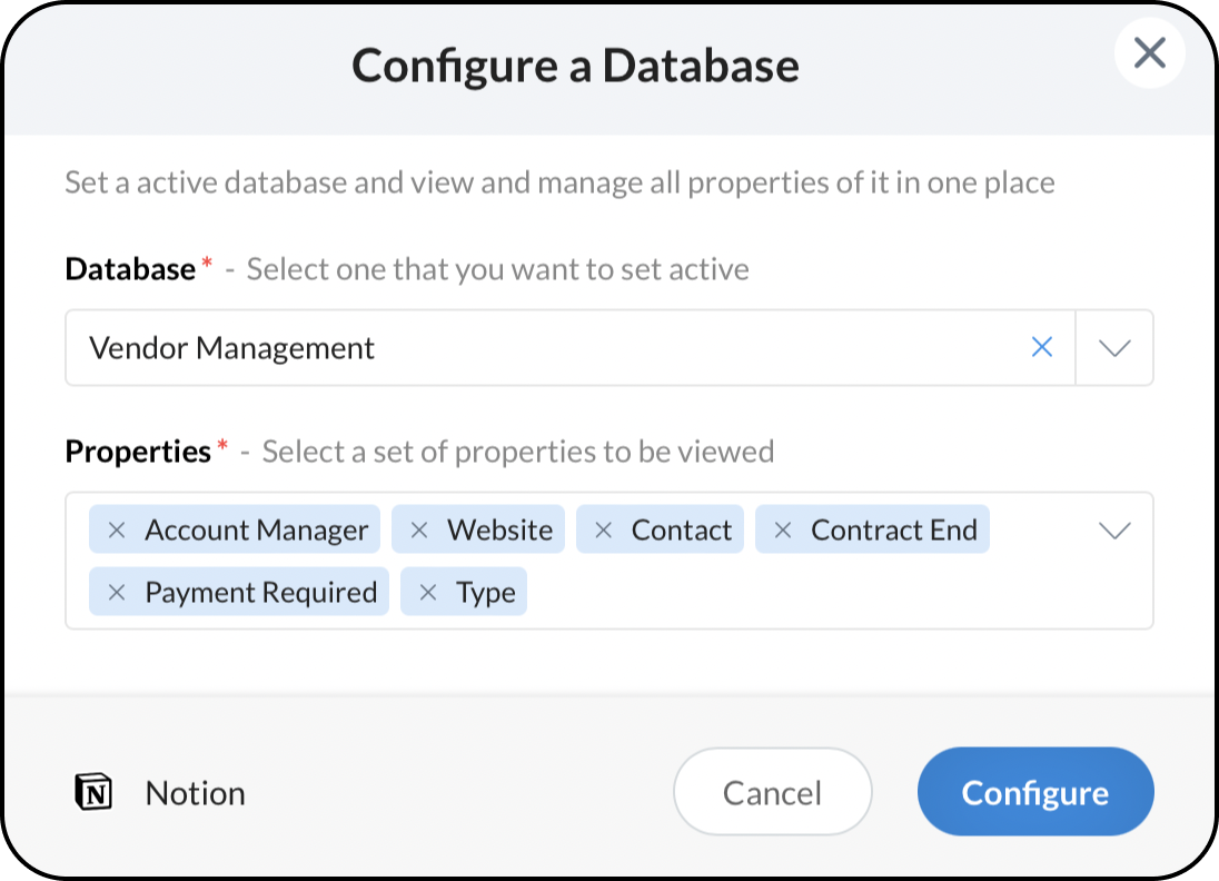 Open - When you click on Open, you will be directed to the Notion page, where the database you selected will be displayed in column view.