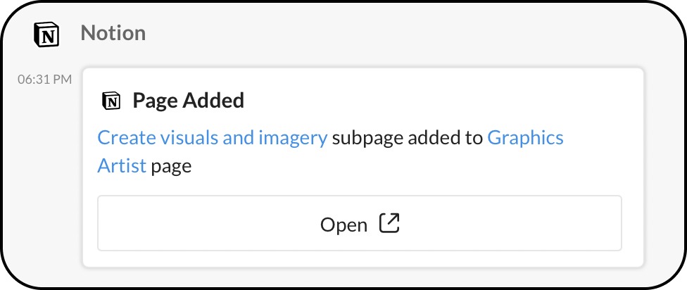 Open - When you click on a Open, you will be directed to the Notion page, where the page you selected will be displayed in column view