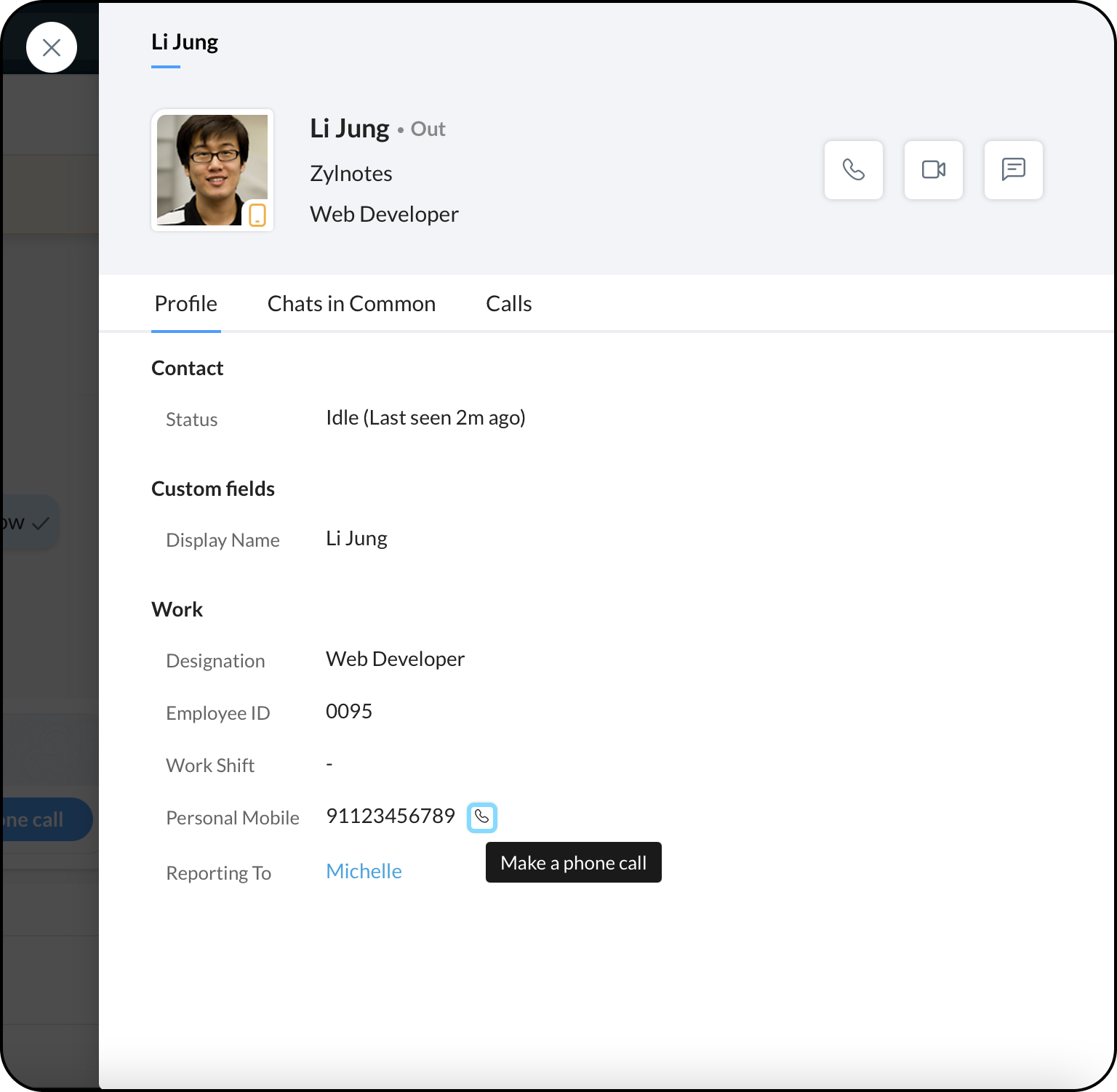 Cliq also syncs your status with your activity in the Zoho apps so when you're engaged in a Zoho Voice Call, your status will be "On a Zoho Voice call".