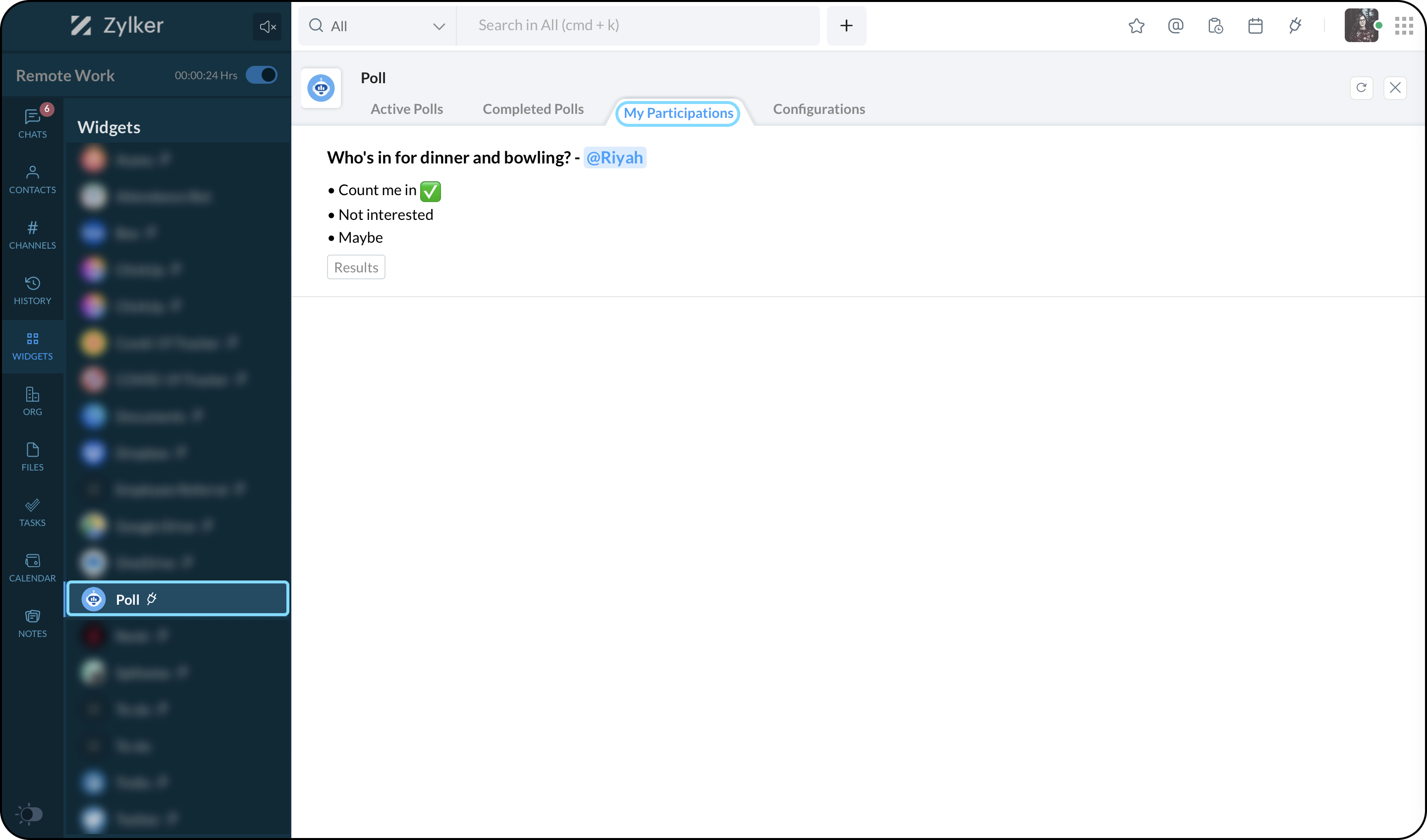 - Navigate to Create Poll in the Poll Bot widget to run a poll.