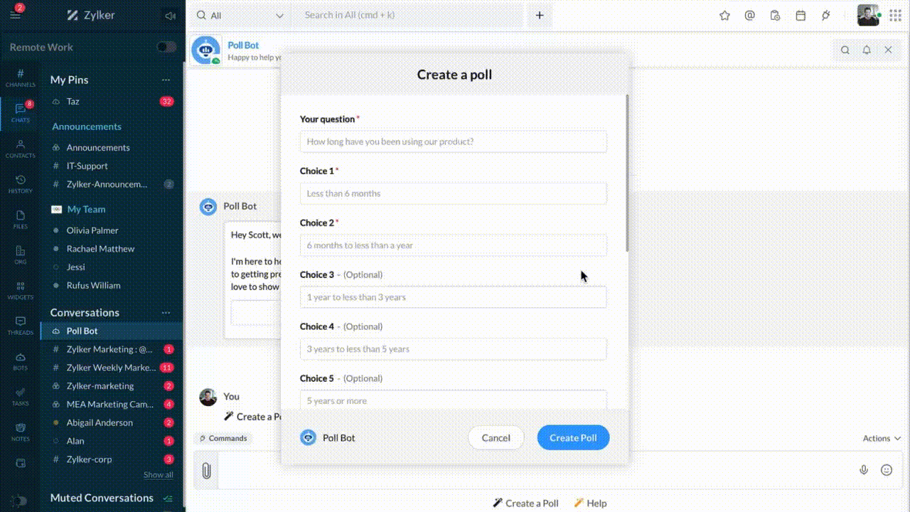 - Once you've chosen everything, click on Create Poll. Now, sit back and relax while Poll Bot works to simplify your decision-making.