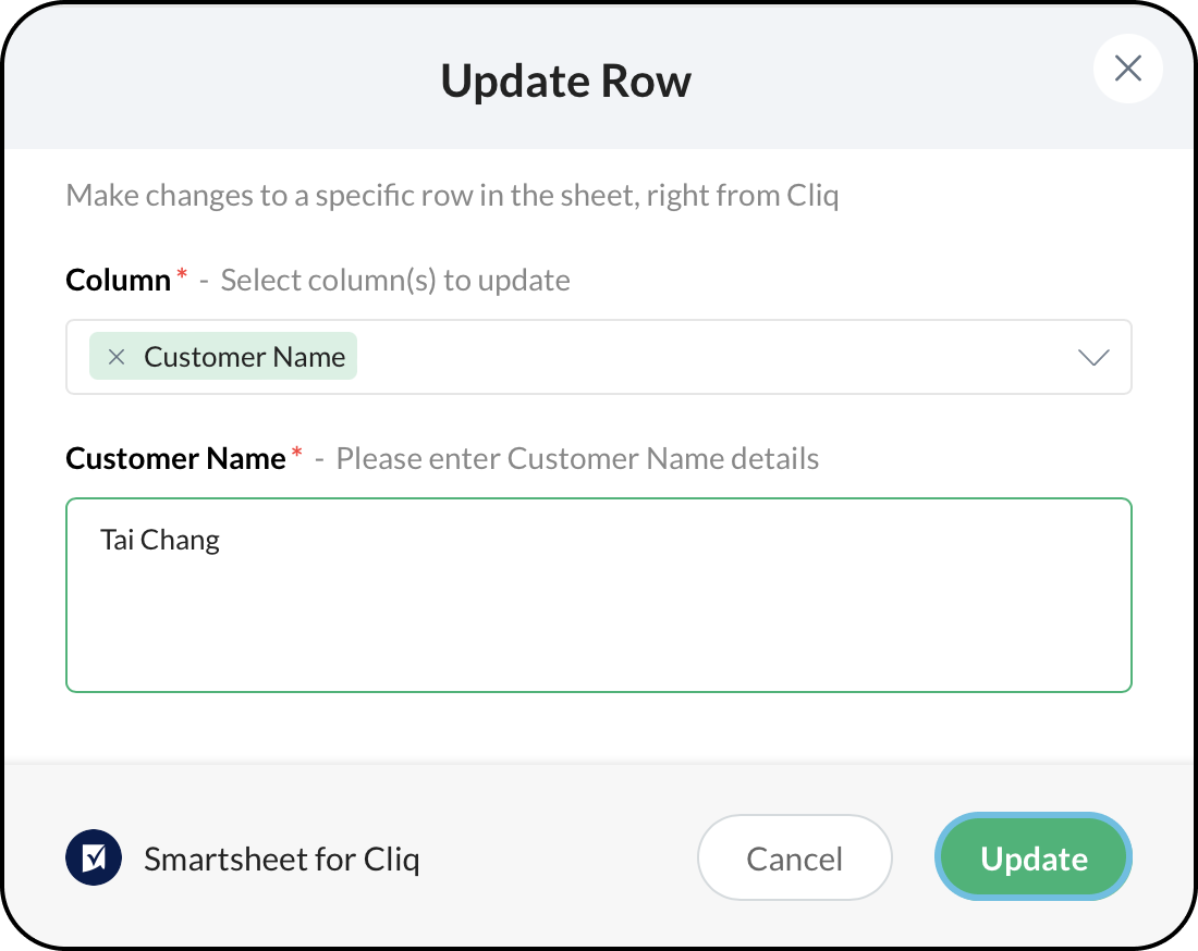 Update Row - By clicking on update row, you can update the data in the columns of the row inside Cliq.