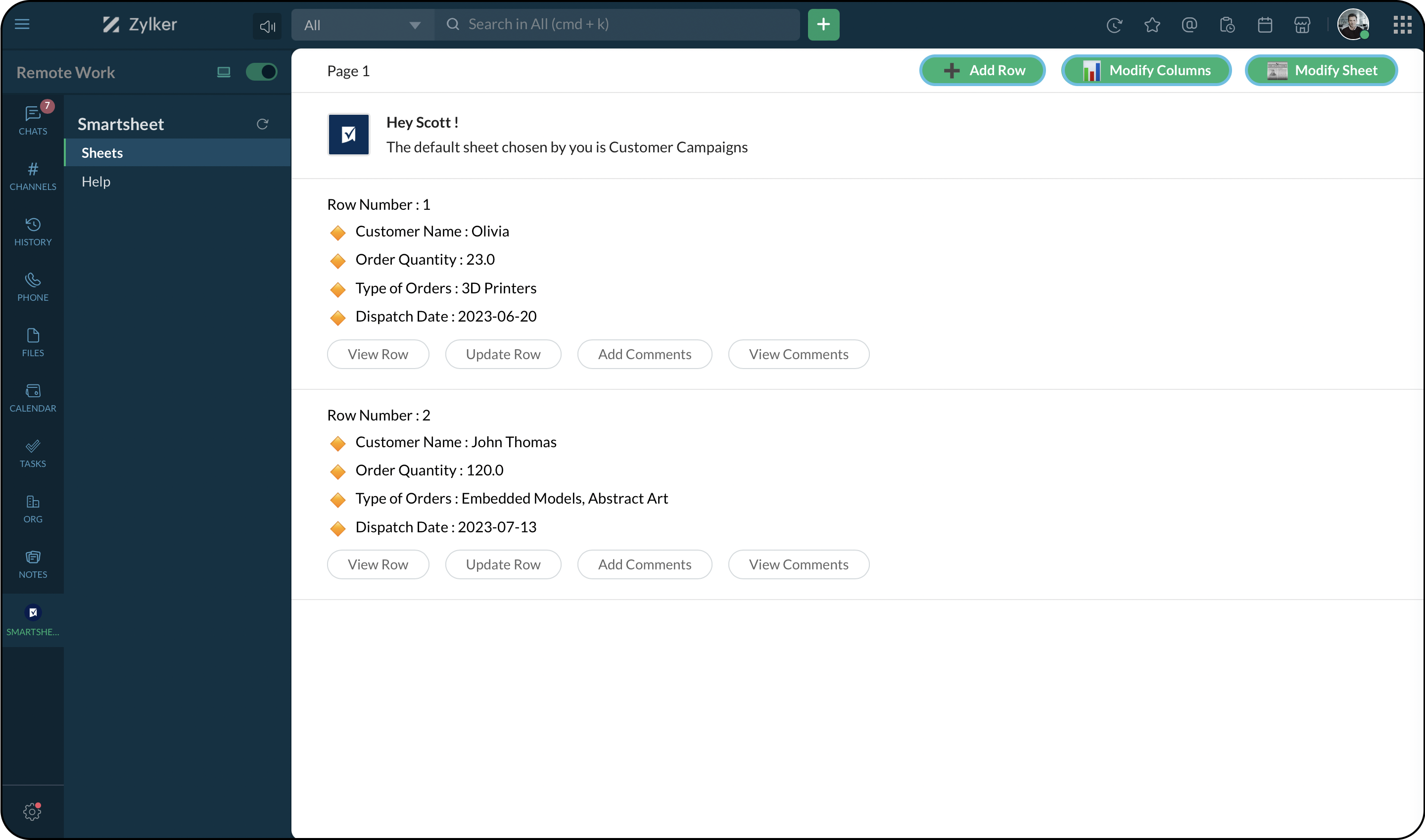 Smartsheet helps you plan, automate, track and report on projects. By integrating smartsheet with Cliq you can view your sheets and perform various actions.