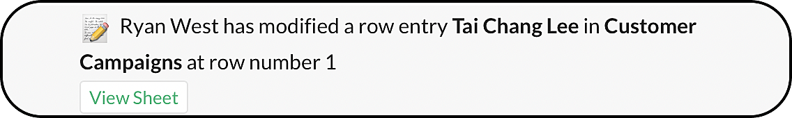 The mapped channel will receive instant notifications and any further rows, columns or sheet updates will be posted inside the channel.