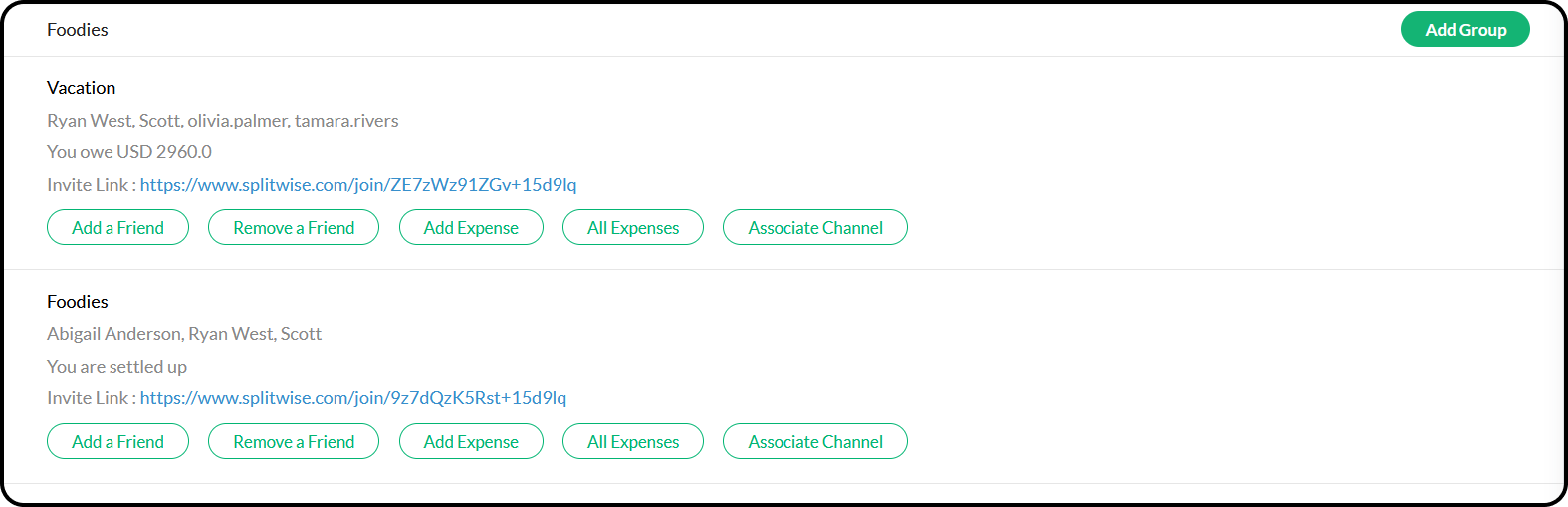 5. Show Expenses: By selecting this option, you can view the 30 most recent expenses made within the group.