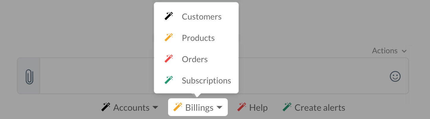 Use the bots menu action-Billings to get valuable insights about your Customers, Products, Orders and Subscriptions.