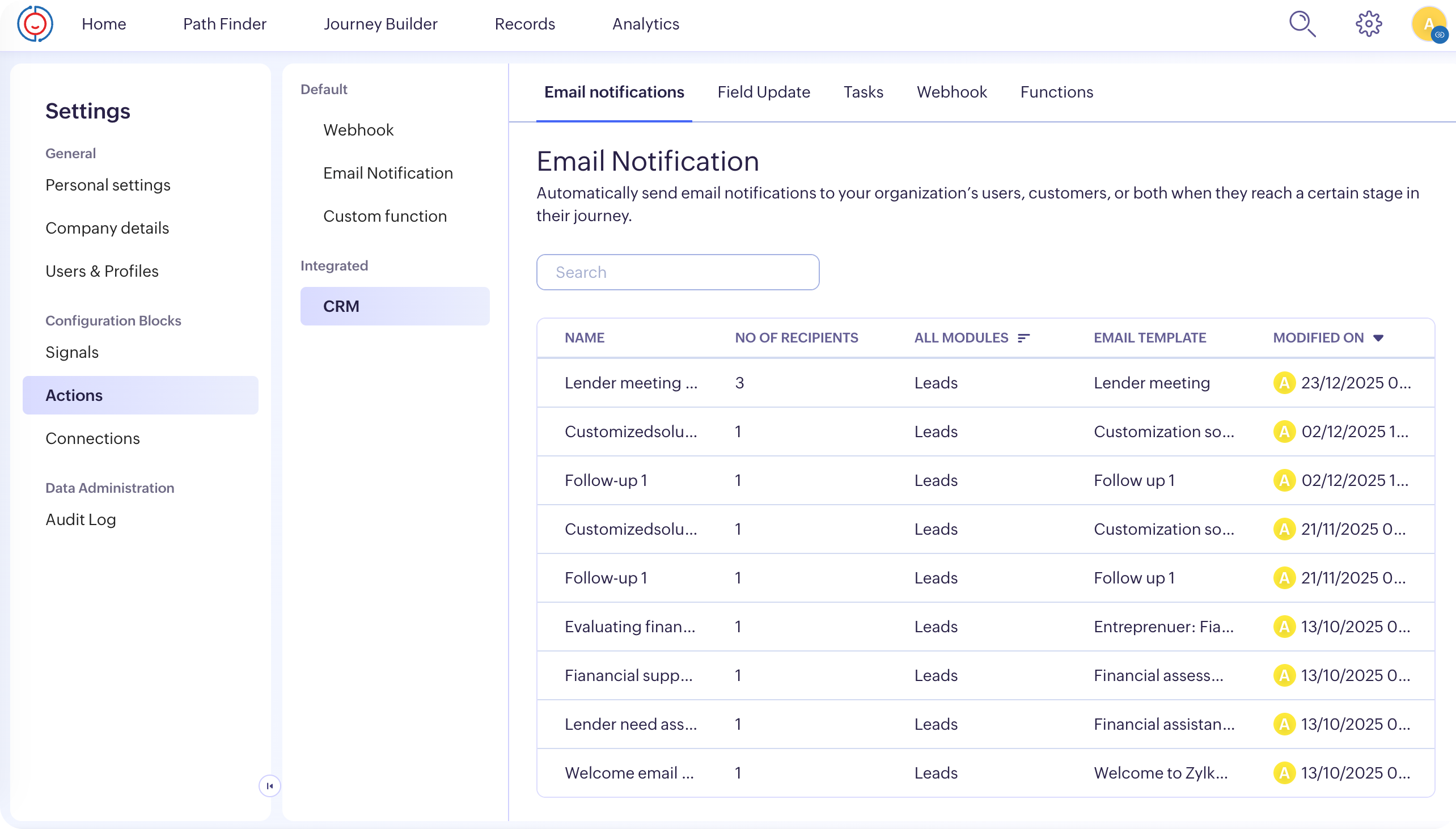 Records in Zoho CommandCenter are instances of paths and journeys that entered the CommandCenter system either directly through CommandCenter itself or via any connected applications. Each record in this module represents a path (in the case of Path ...