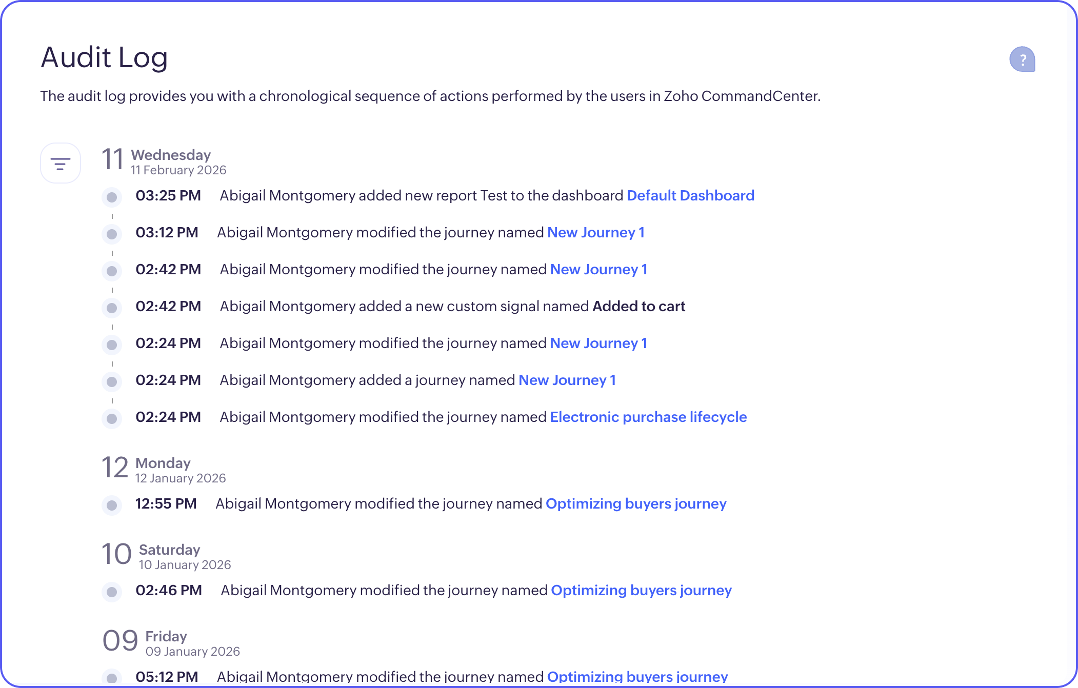 Audit Logs to monitor user actions in Zoho CommandCenter