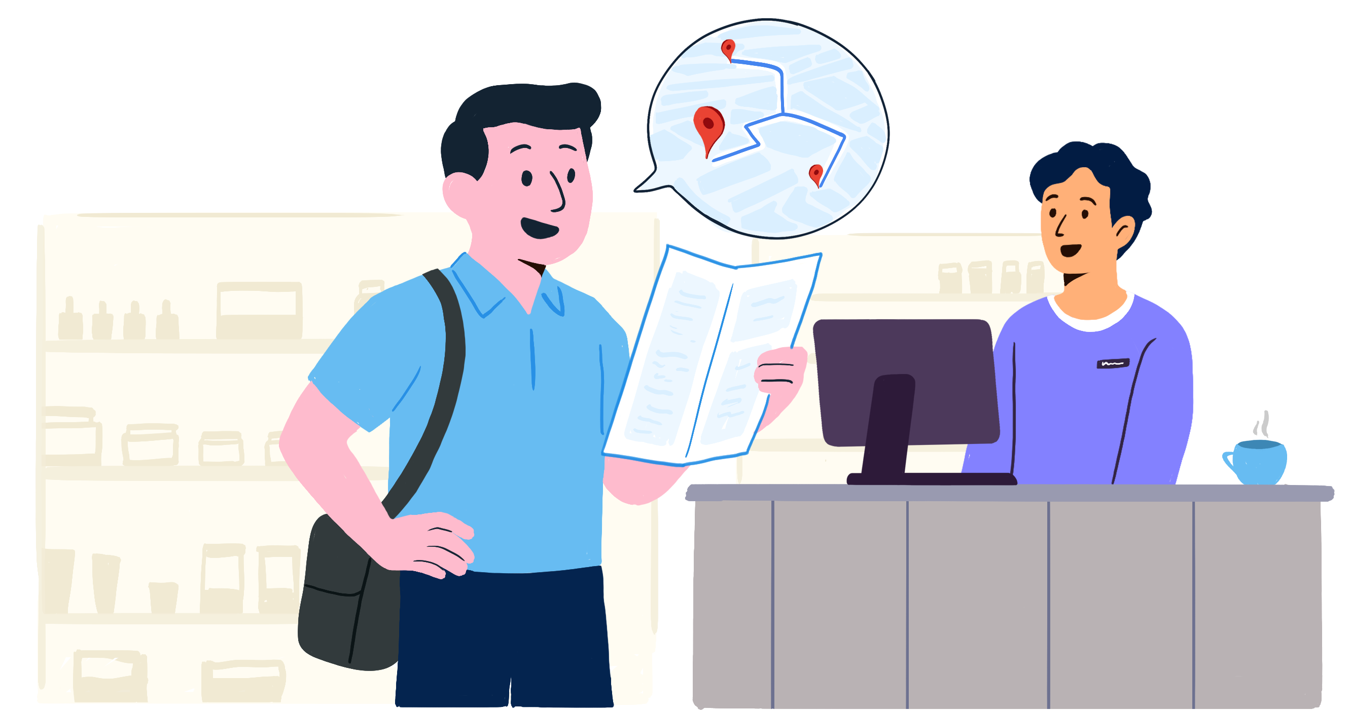 He approaches the help booth at the entrance. He picks up the store directory and manages to spot the bean bag section thanks to the right indexing of the product in the map.