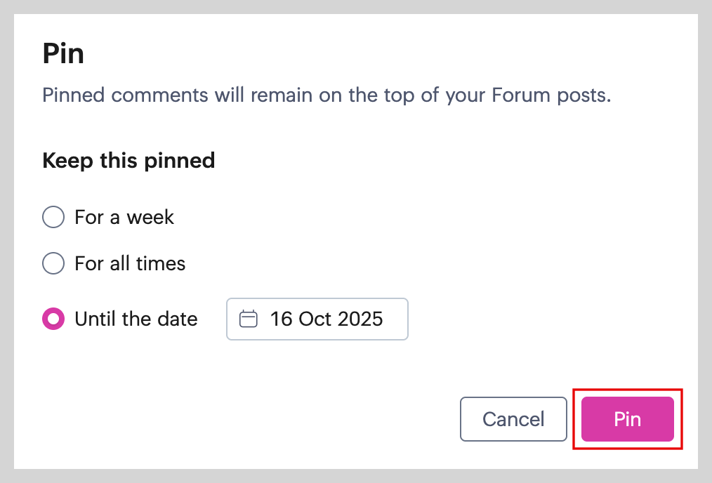 Pinning a post keeps it at the top of the forum so members can find it quickly. This is helpful for important updates, announcements, or any discussion you want everyone to see first. Pinned posts stay highlighted until you unpin them.