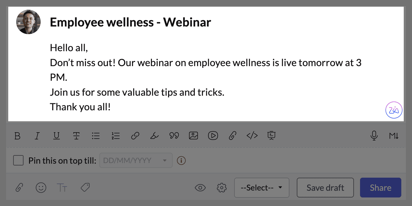 For further assistance or more information, contact support@zohocommunityspaces.com. We're happy to help!