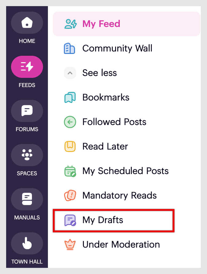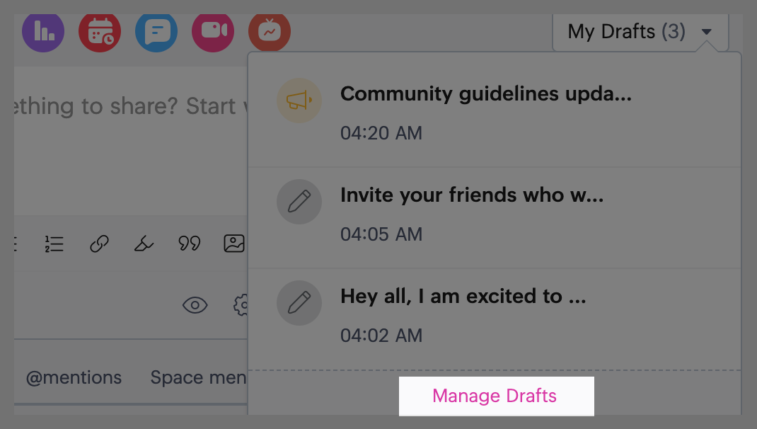 From the dropdown, click Manage Drafts to view the list of all drafts.