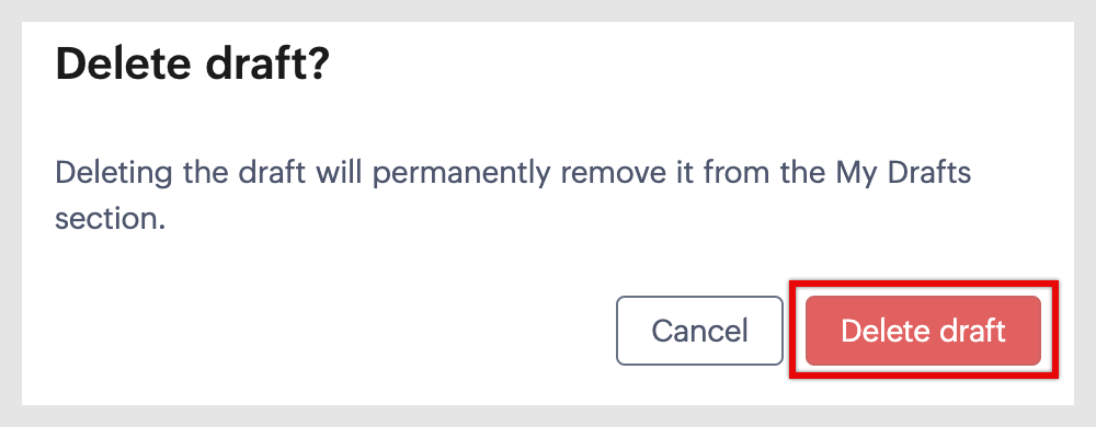In the pop-up, click Delete draft to eliminate the draft permanently.