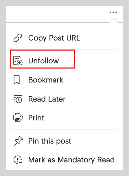 4. Select Unfollow from the dropdown menu.