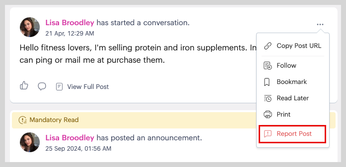 Once reported, community hosts will verify your report and moderate the post accordingly.