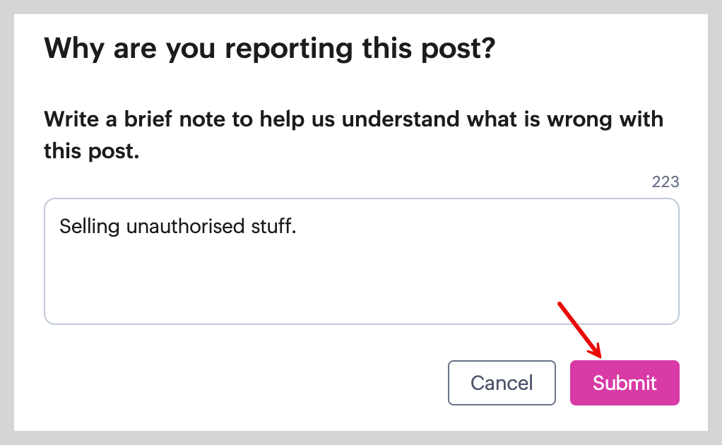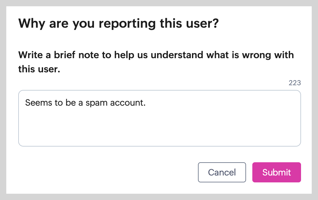 In the pop-up, enter your reason for reporting and click Submit.