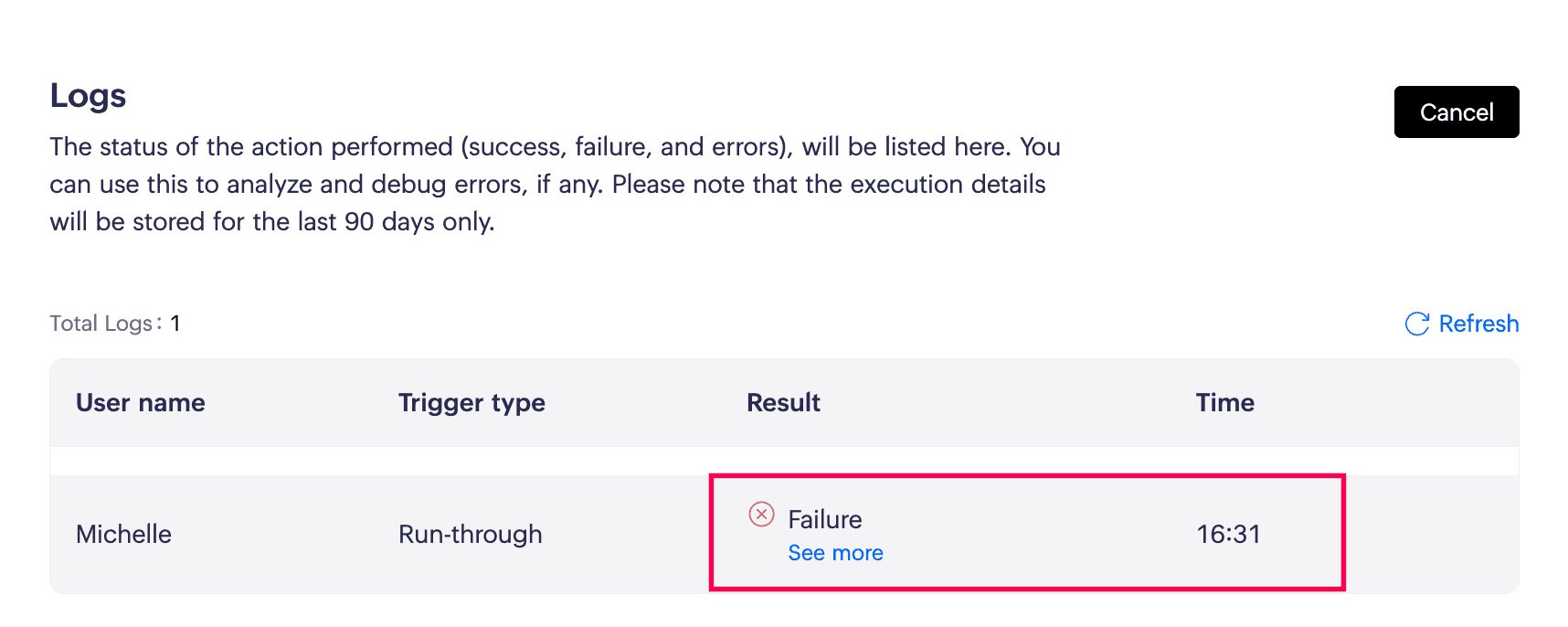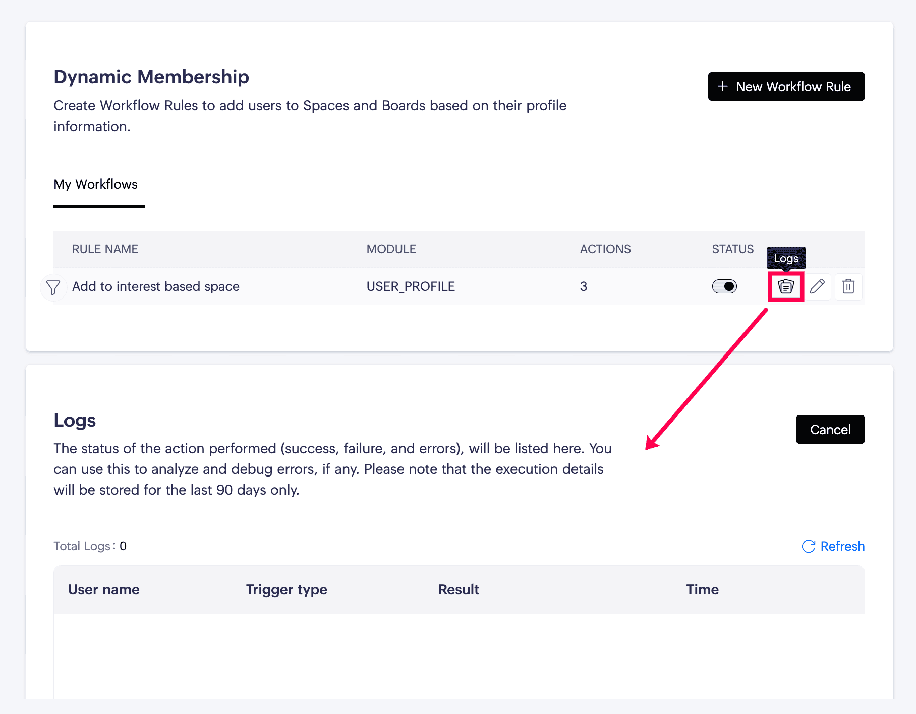 Logs show when the rule was triggered and what result it produced. This is the best place to verify whether the correct members were evaluated and whether the intended action was applied.
